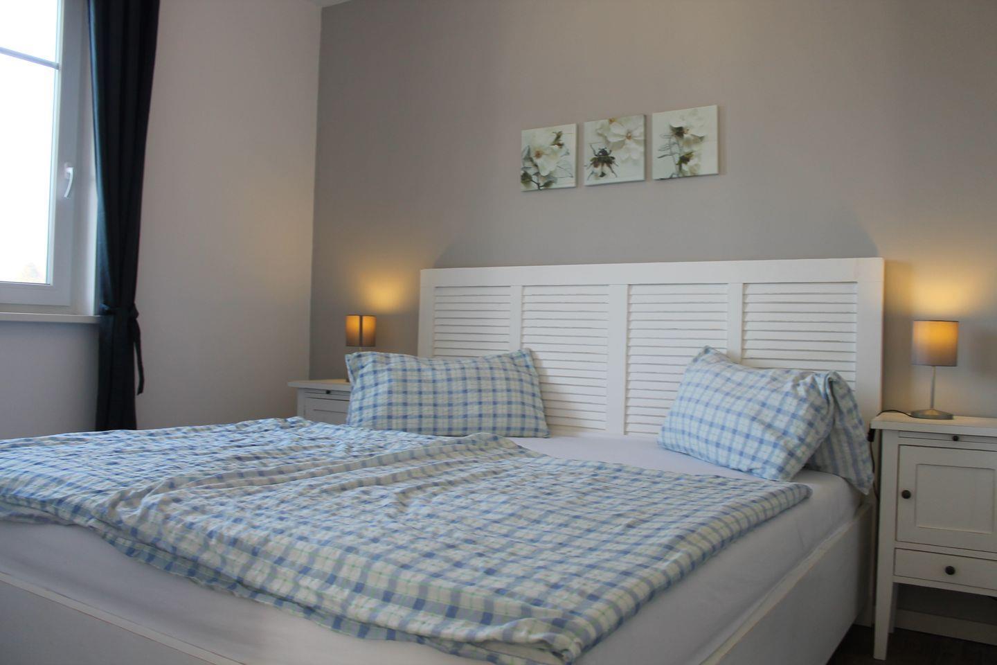 Schlafzimmern mit Doppelbett (180 x 200cm, Matratzen sind durchgängig) und