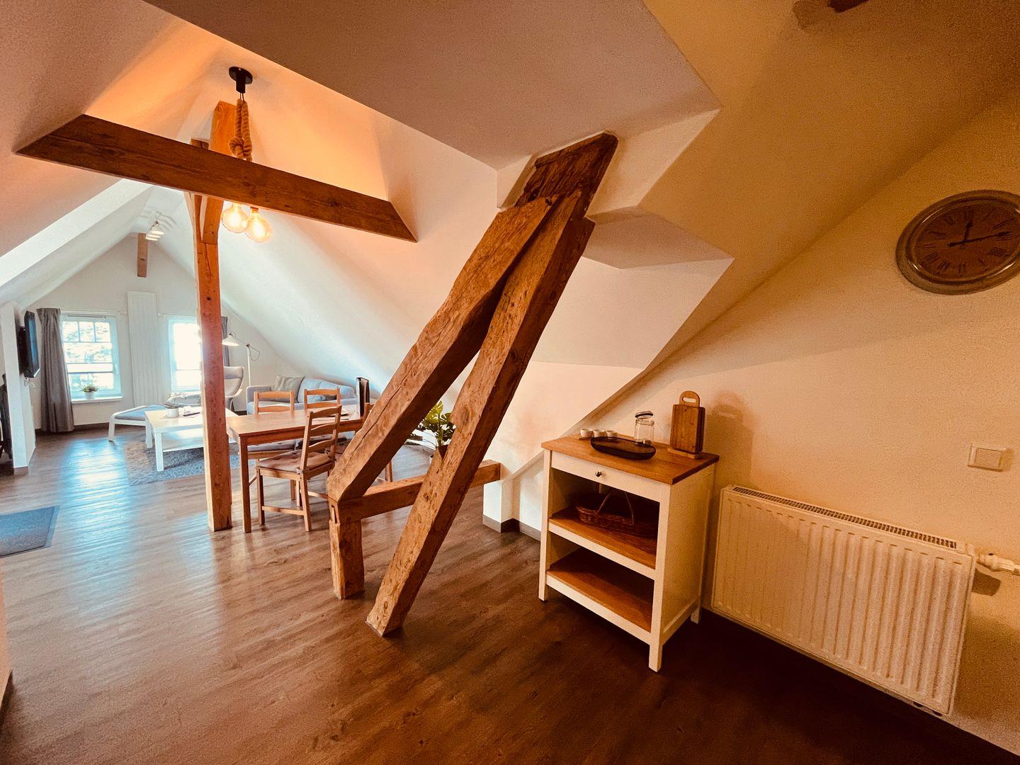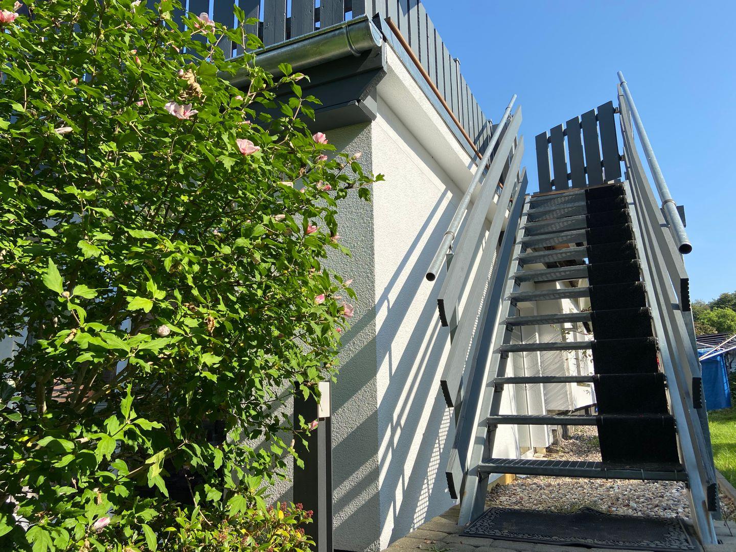 Die Ferienwohnung ist über eine Außentreppe zu erreichen. Die Wohnung, etwa 50