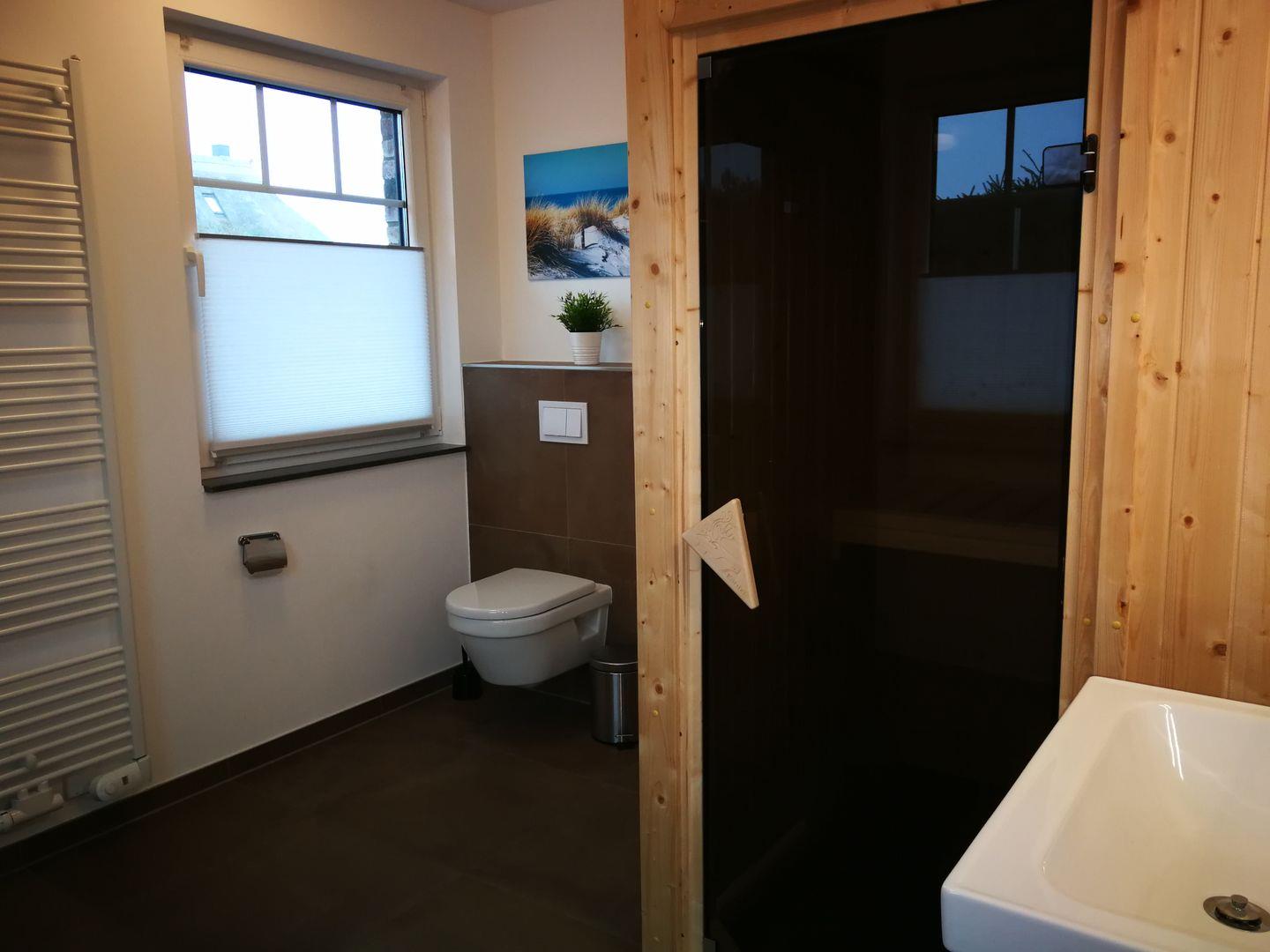 und Sauna. Über eine Treppe erreichen Sie zwei Schlafzimmer mit jeweils einem