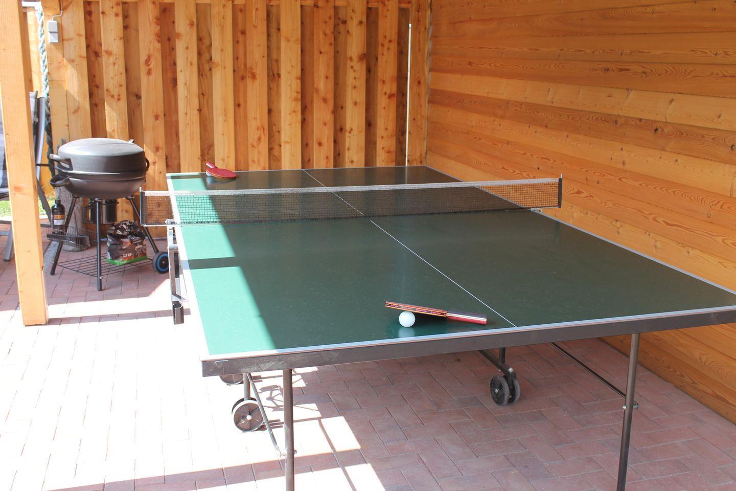 Holzkohlegrill und Gasgrill sowie einer Tischtennisplatte lädt zum Verweilen
