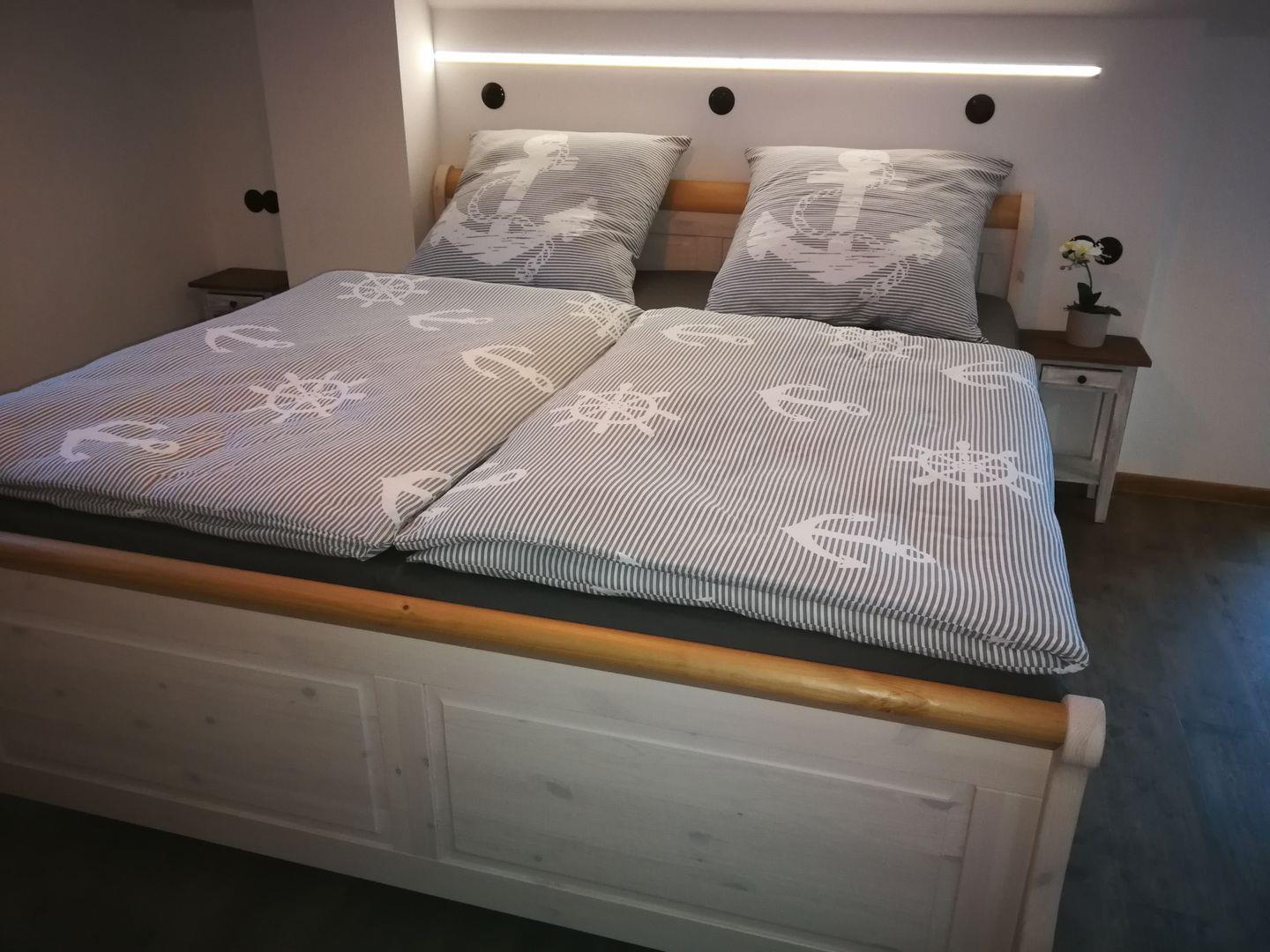 Schlafzimmer. Zwei Schlafzimmer mit je einem Doppelbett (180x200cm, Matratzen