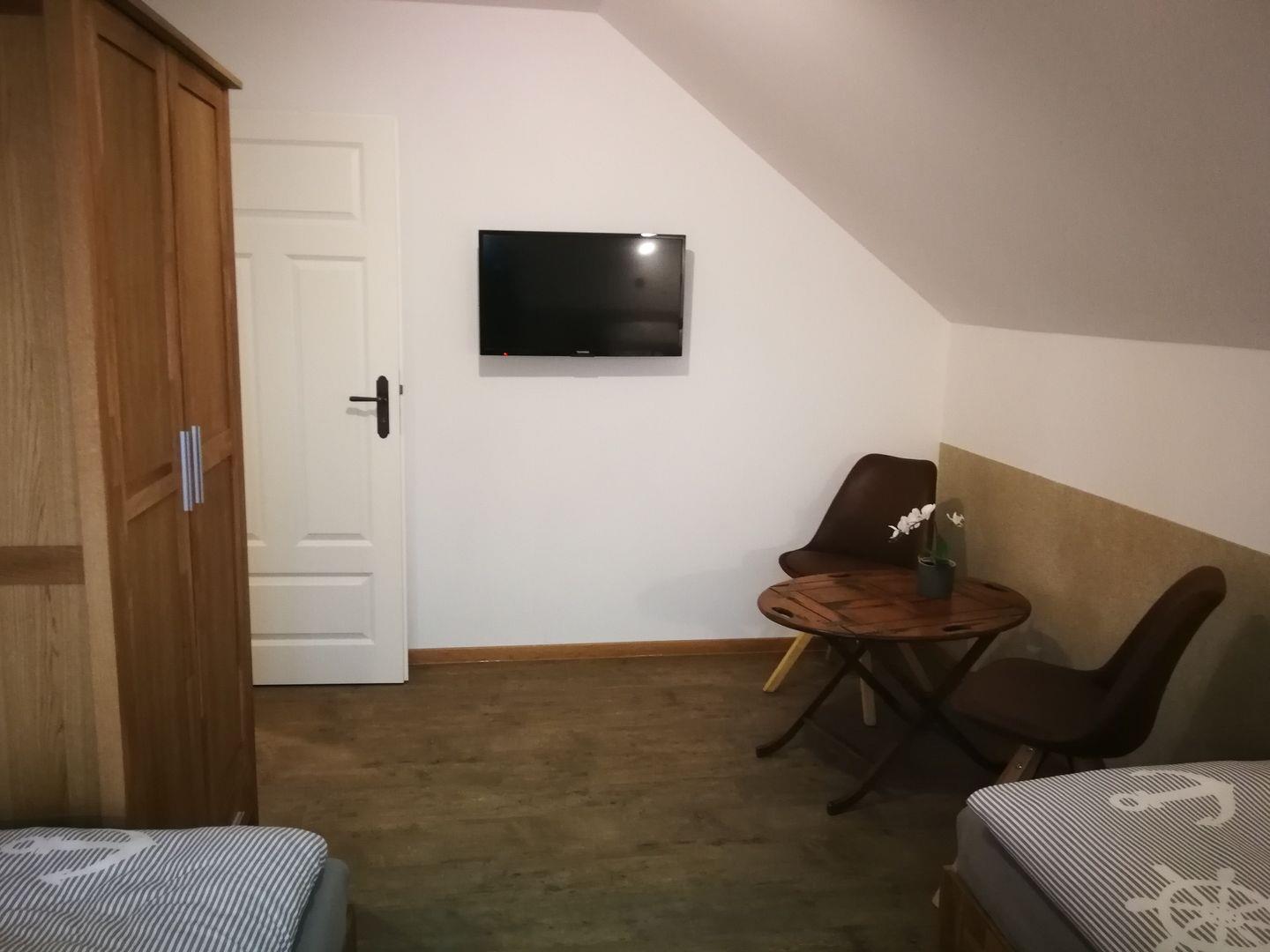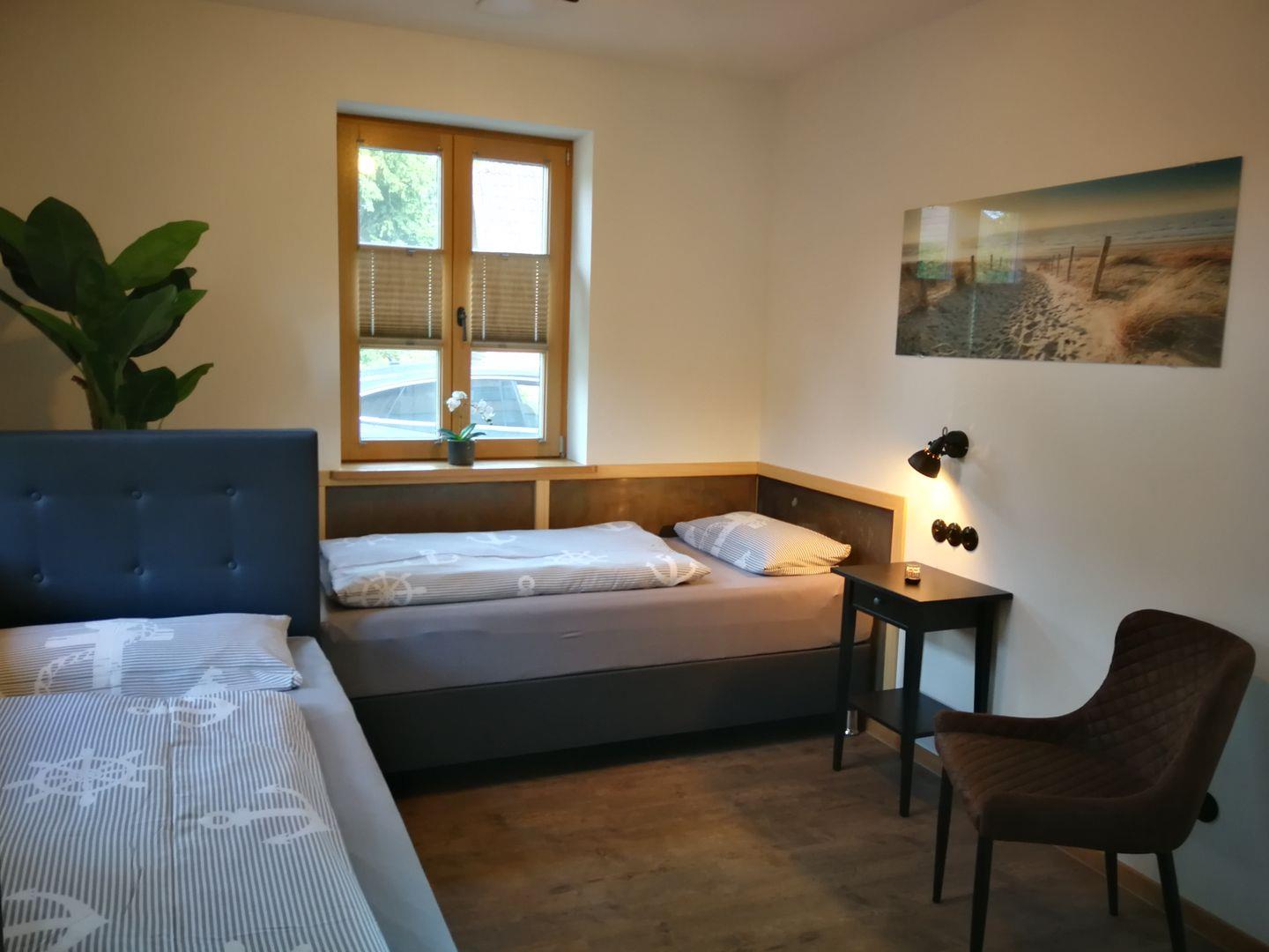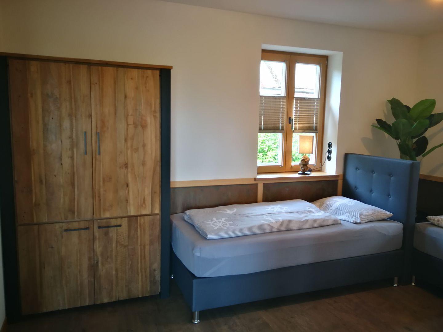 durchgängig) und Blick auf den Bodden, sowie ein Zimmer mit zwei Einzelbetten
