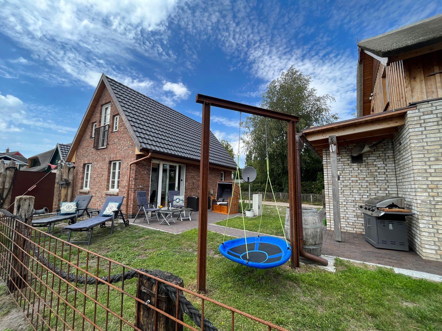 (Gasgrill), ein Sandkasten und eine Schaukel für die kleinen Mitreisenden.