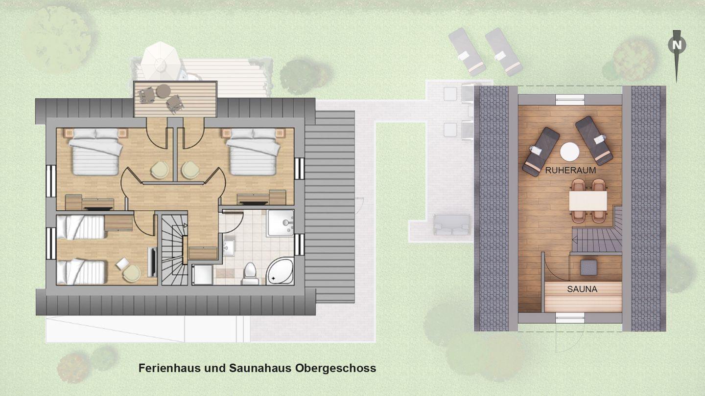 Schnelles Internet (Glasfaser) ist vorhanden. Ein Spiel- und Saunahaus mit