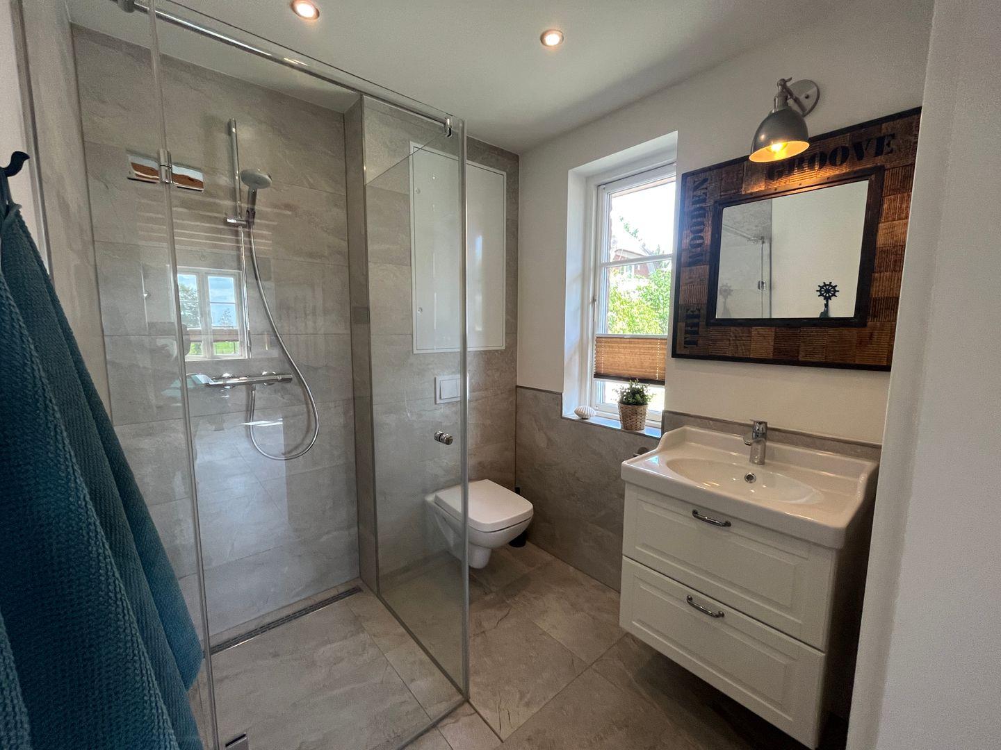 einem Bad mit bodengleicher Dusche. Im OG befinden sich drei weitere