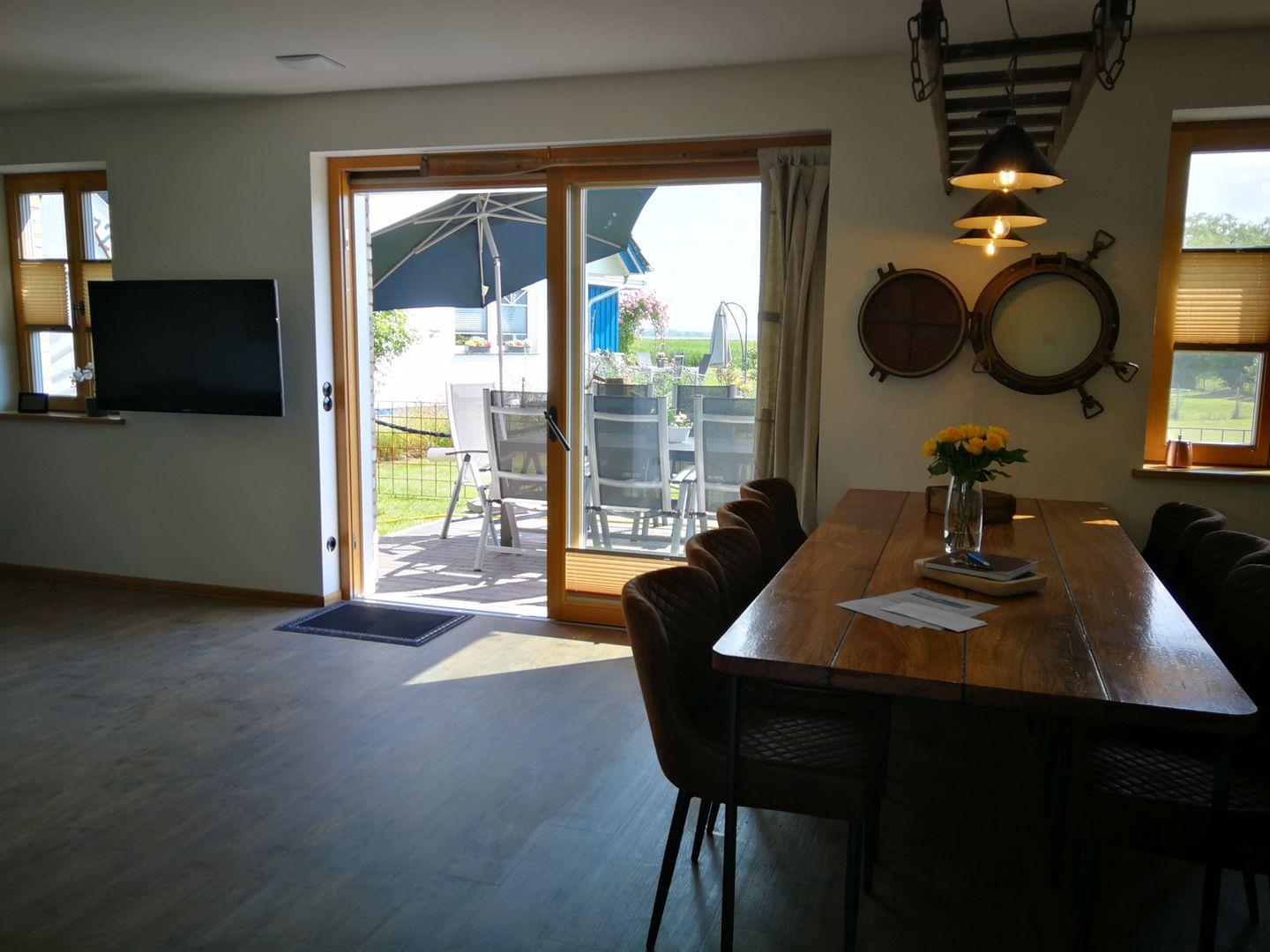 Erleben Sie im Boddenkutter in Born ein großzügiges Ferienhaus mit Sauna, Billardtisch und Boddenblick für einen unvergesslichen Urlaub.