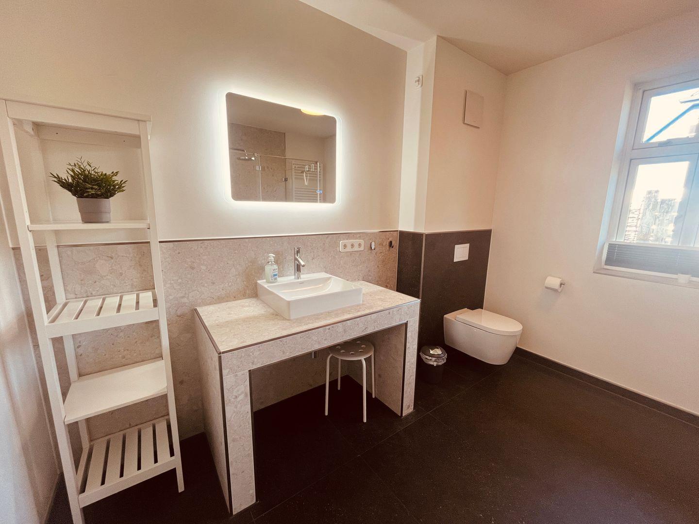sind durchgängig) und einem Bad mit ebenerdiger Dusche.Die Terrasse ist mit