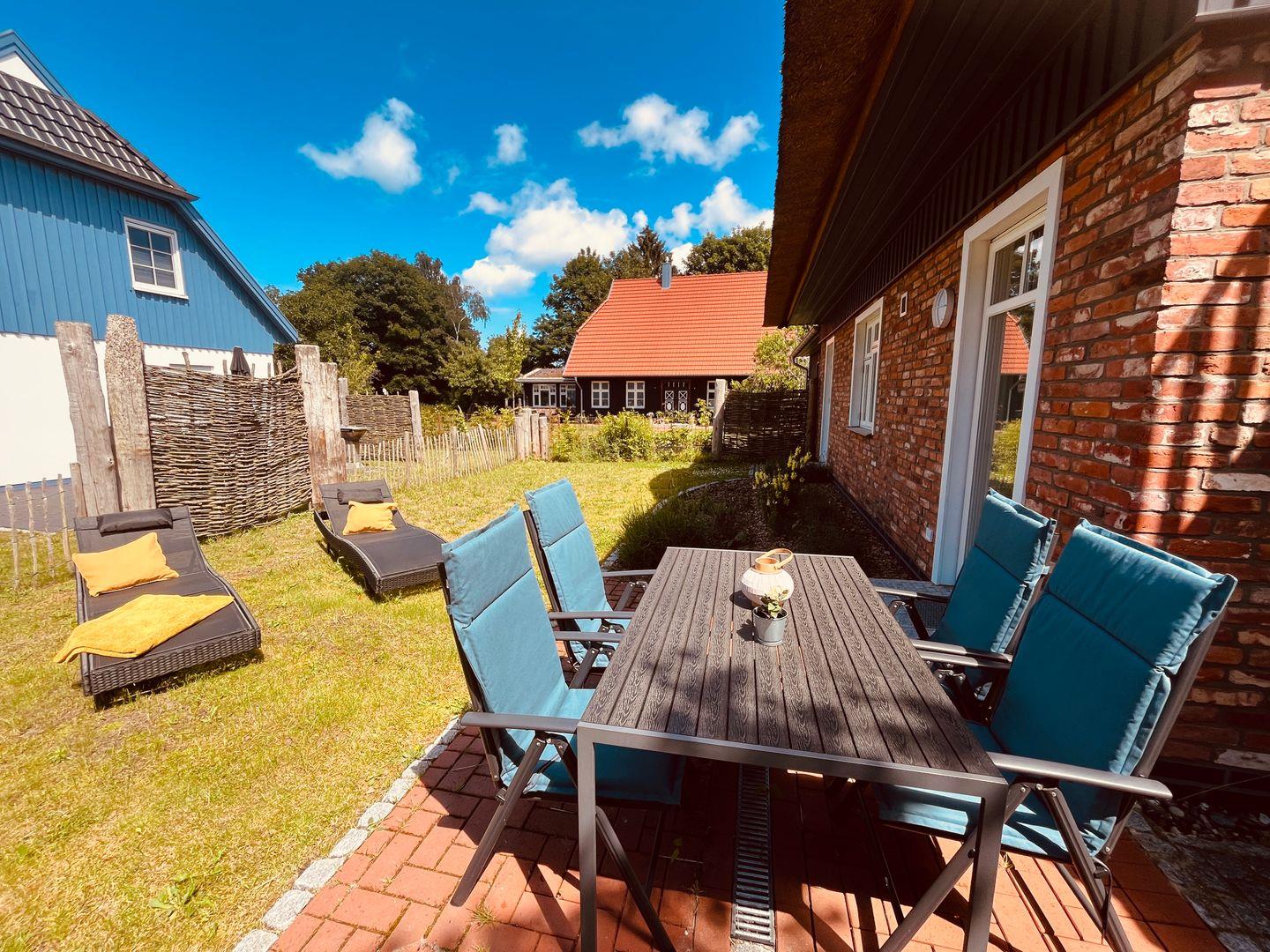 Charmante Ferienwohnung Friesia mit Reetdach, Kamin, Terrasse und Garten in Born auf dem Darß.