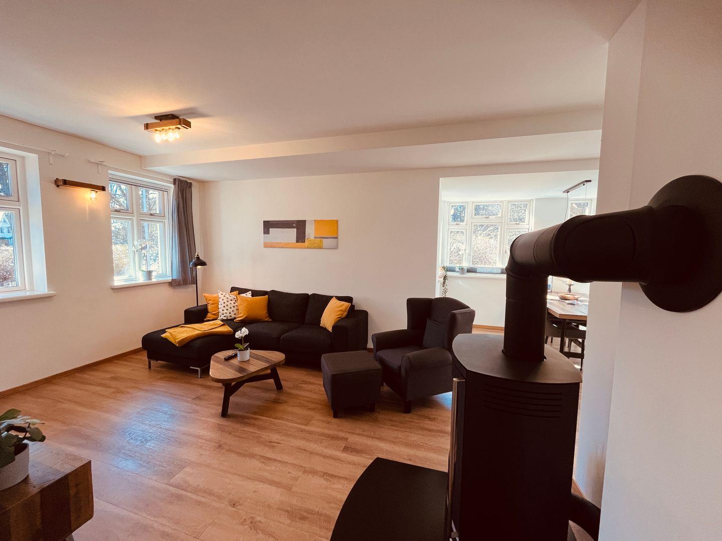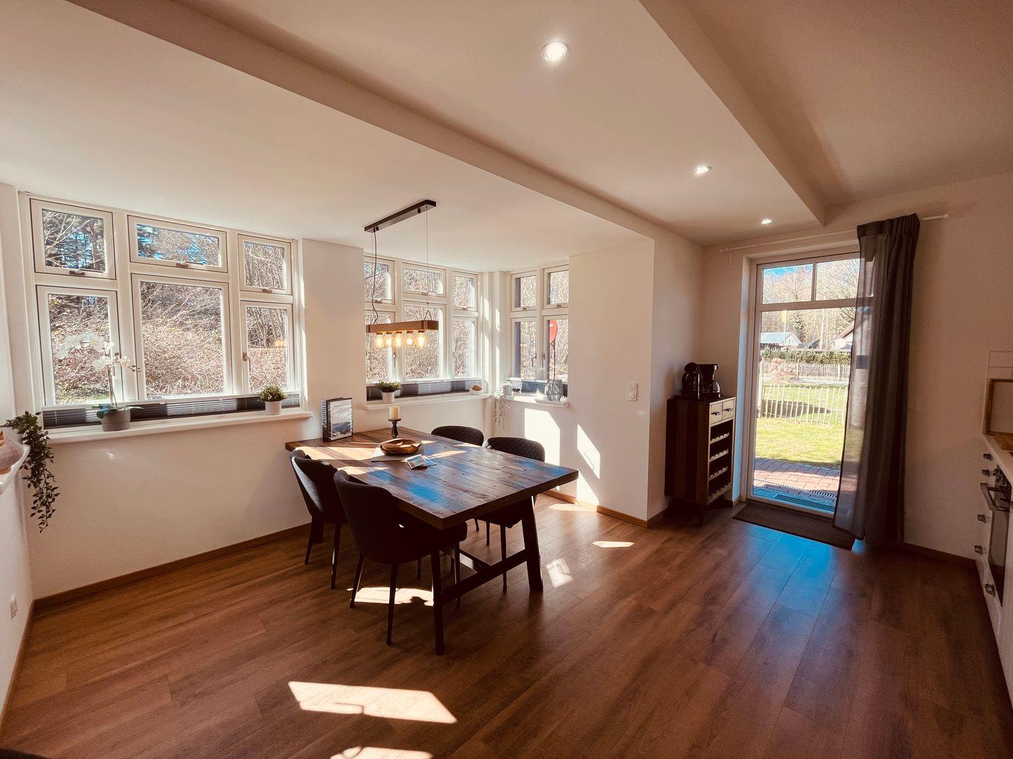 Die im Erdgeschoss befindliche Ferienwohnung ist etwa 70 m² groß. Sie besteht