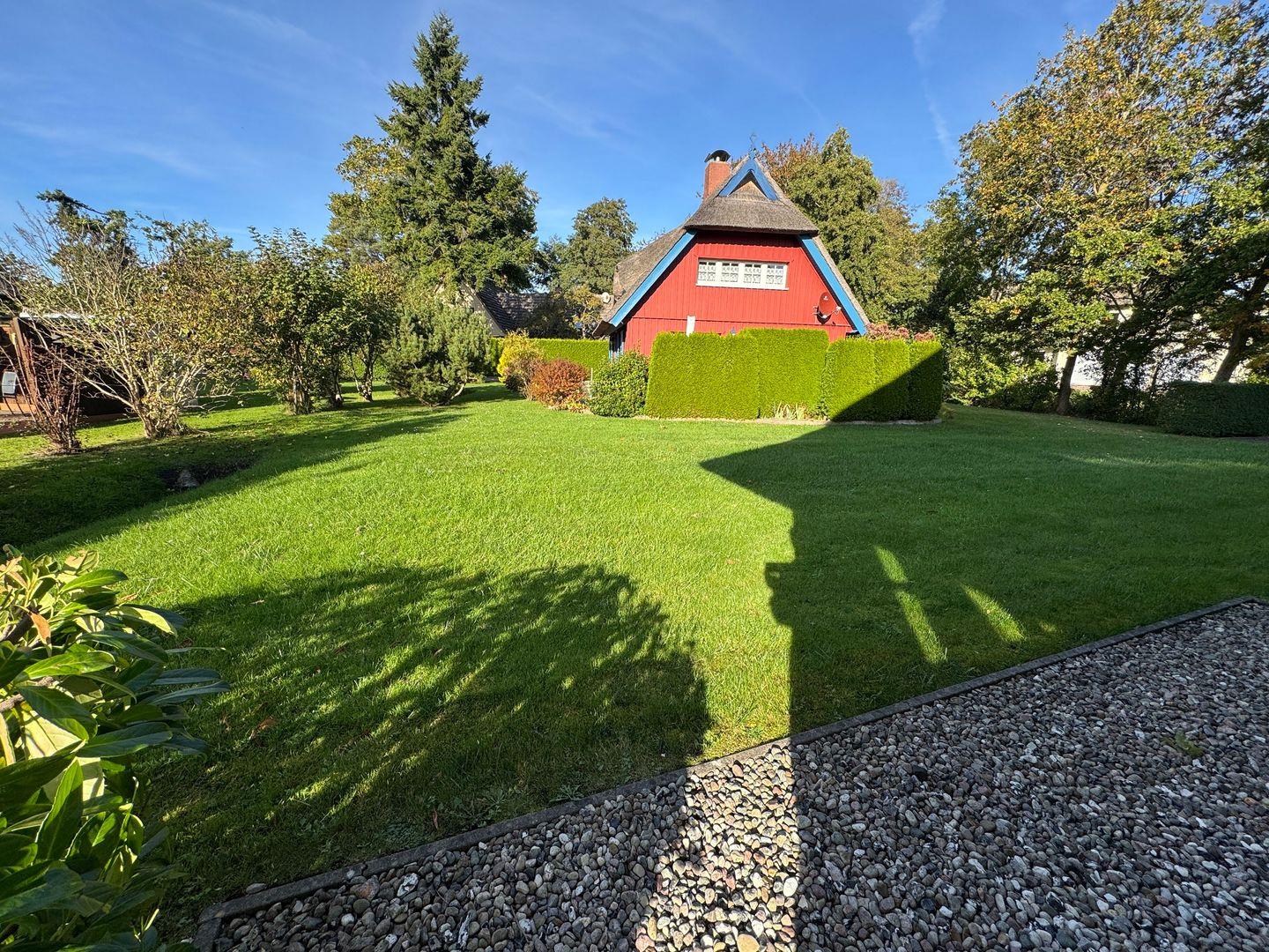 Im Außenbereich lädt eine möblierte Terrasse mit Sonnenschirm im gepflegten Garten zu entspannten Stunden im Freien ein. Hier können Sie den Tag mit einem Frühstück an der frischen Luft beginnen oder den Abend in ruhiger Atmosphäre ausklingen lassen.