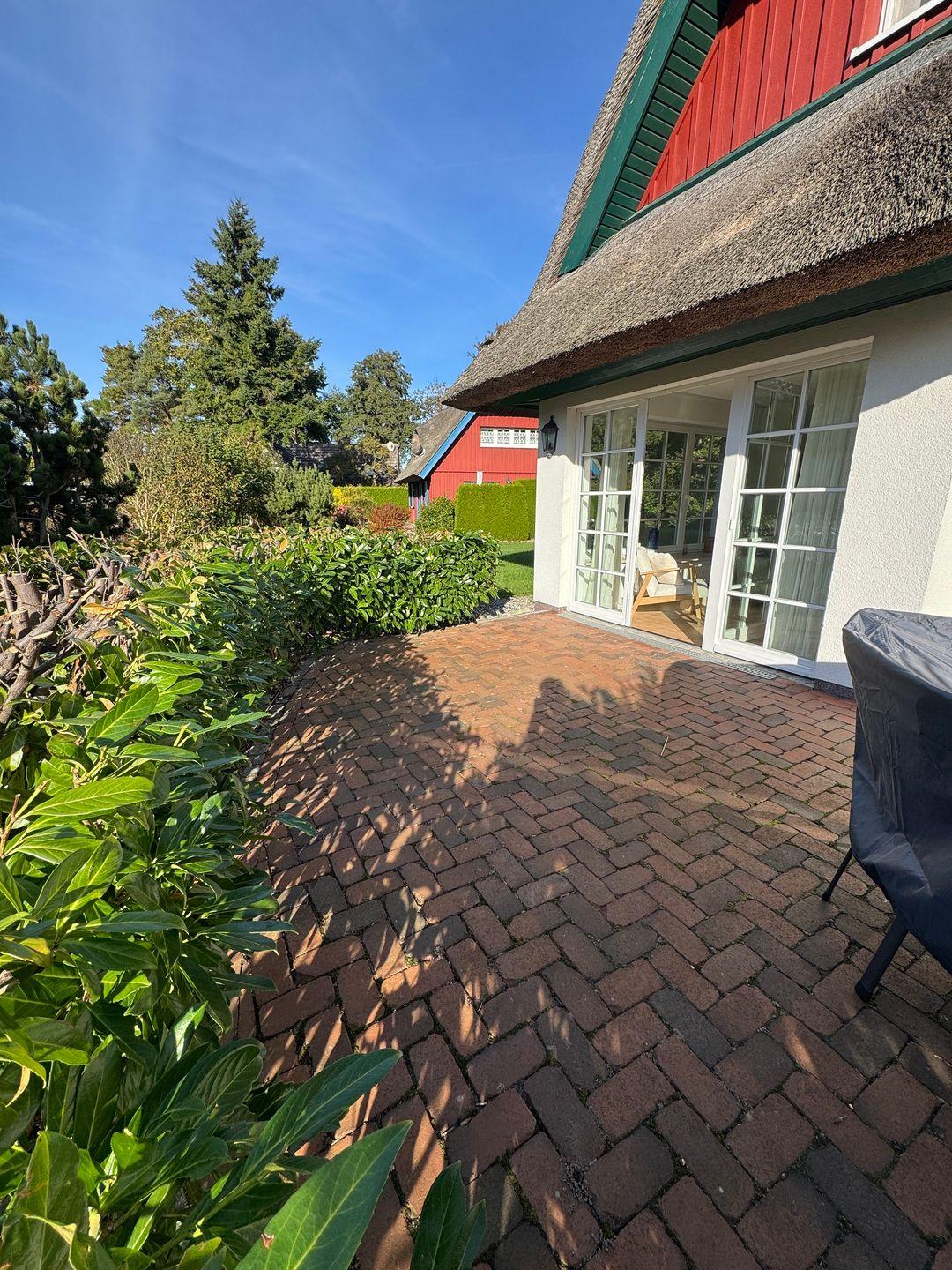 Ein privater Parkplatz befindet sich direkt am Haus. Fahrräder können sicher im abschließbaren Gartenhäuschen untergestellt werden. Dort stehen außerdem verschiedene Strandutensilien wie Windschutz, Sonnenschirm, Spielzeug oder ein Lenkdrachen bereit.