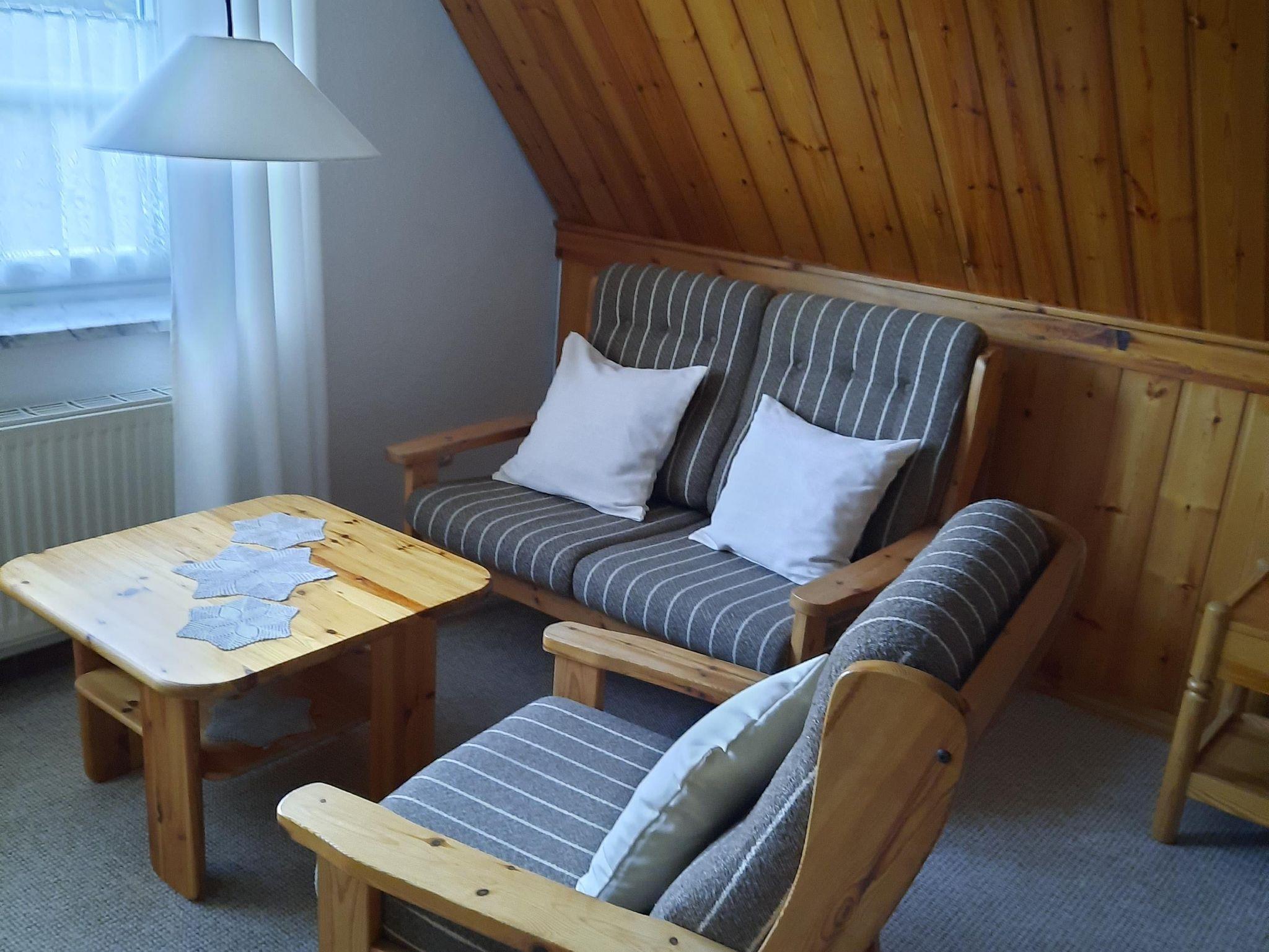 Die Nichtraucher-Ferienwohnung ist im Schlaf- und Wohnbereich mit Teppichboden ausgelegt. Außenrollos für gesunden Schlaf. 2.Doppelbett im Wohn-Schlafraum. Bettwäsche, Küchen-/ Handtücher, Endreinigung inklusive.