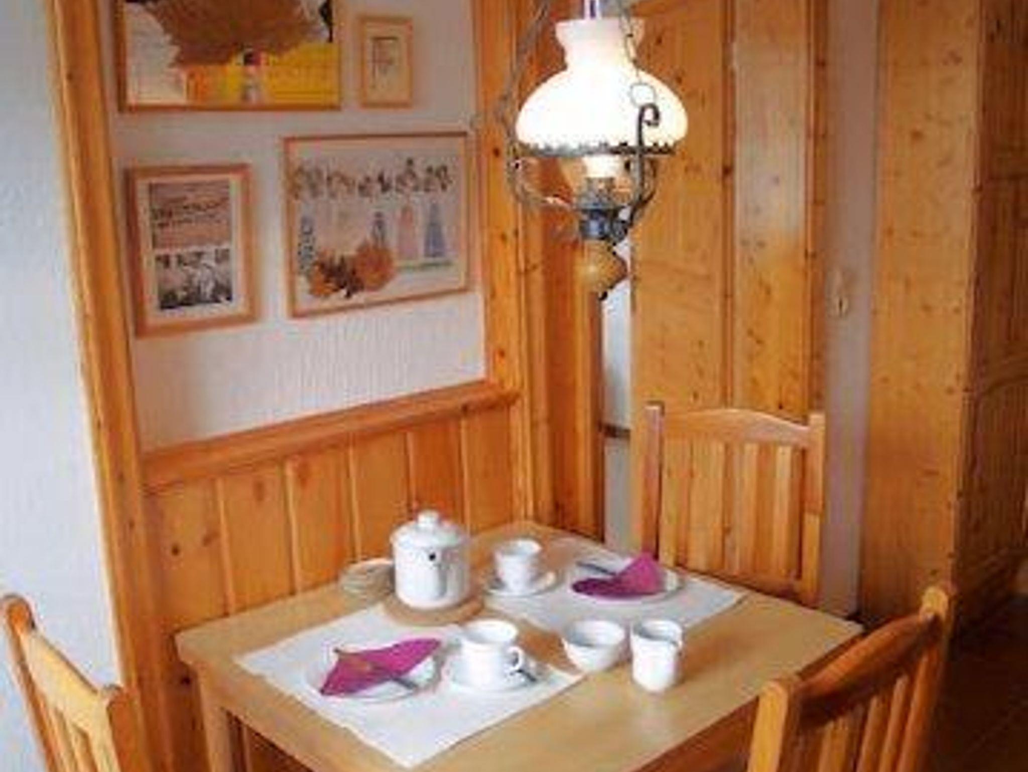 Der Tisch im im Küchenbereich lässt sich ausziehen damit alle Personen gemeinsam essen können. Tee und Kaffee stehen den Gästen kostenlos zur Verfügung.