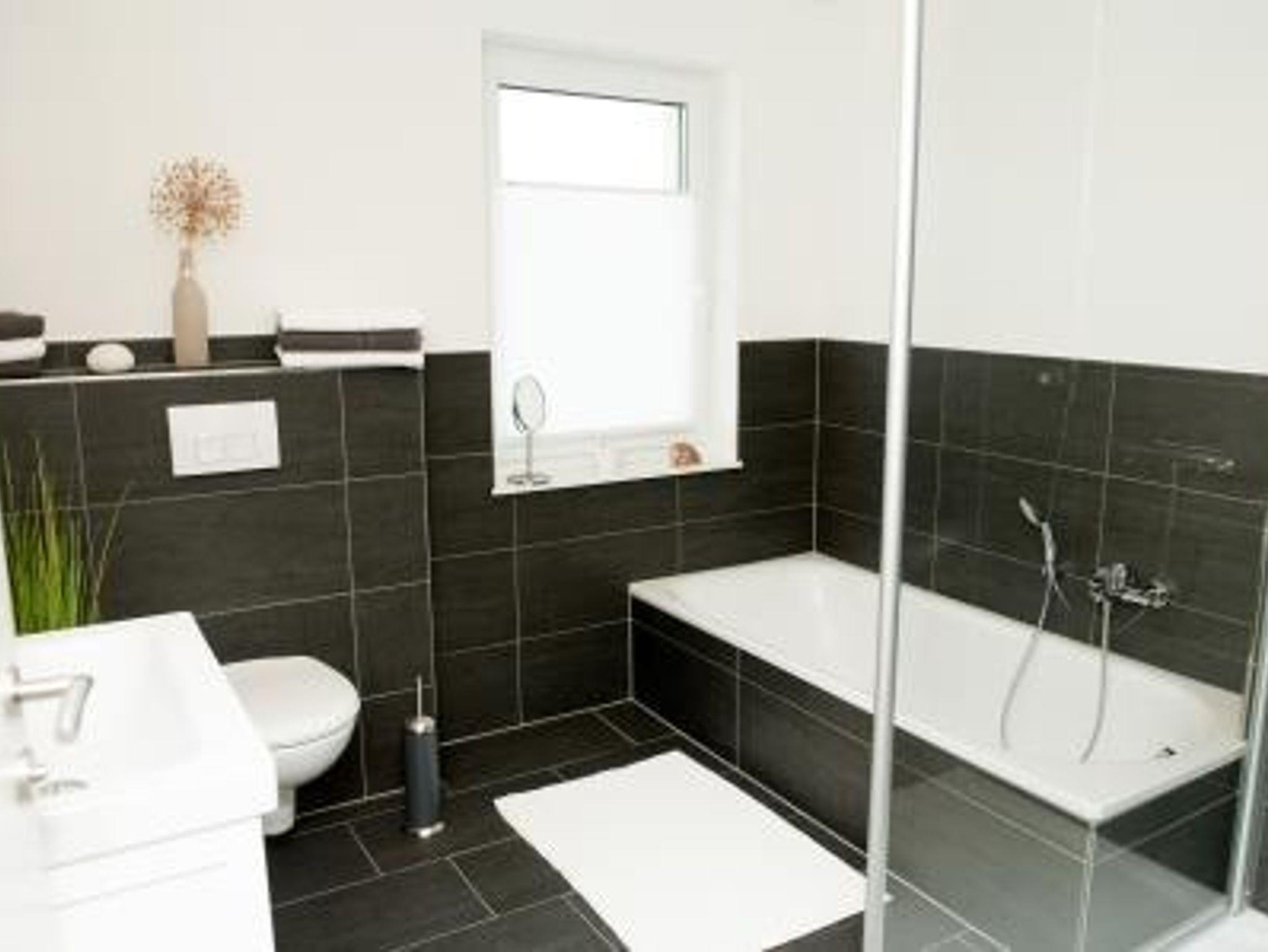 In den jeweils modern eingerichteten 110 qm Doppelhaushälften befinden sich im 1. OG ein Vollbad, ein Schlafzimmer mit Doppelbett 1,80× 2,00 Meter mit TV, ein Schlafzimmer mit Doppelbett 1,60× 2,00 Meter sowie ein Zimmer mit zwei Einzelbetten 0,90× 2,00 Meter.
