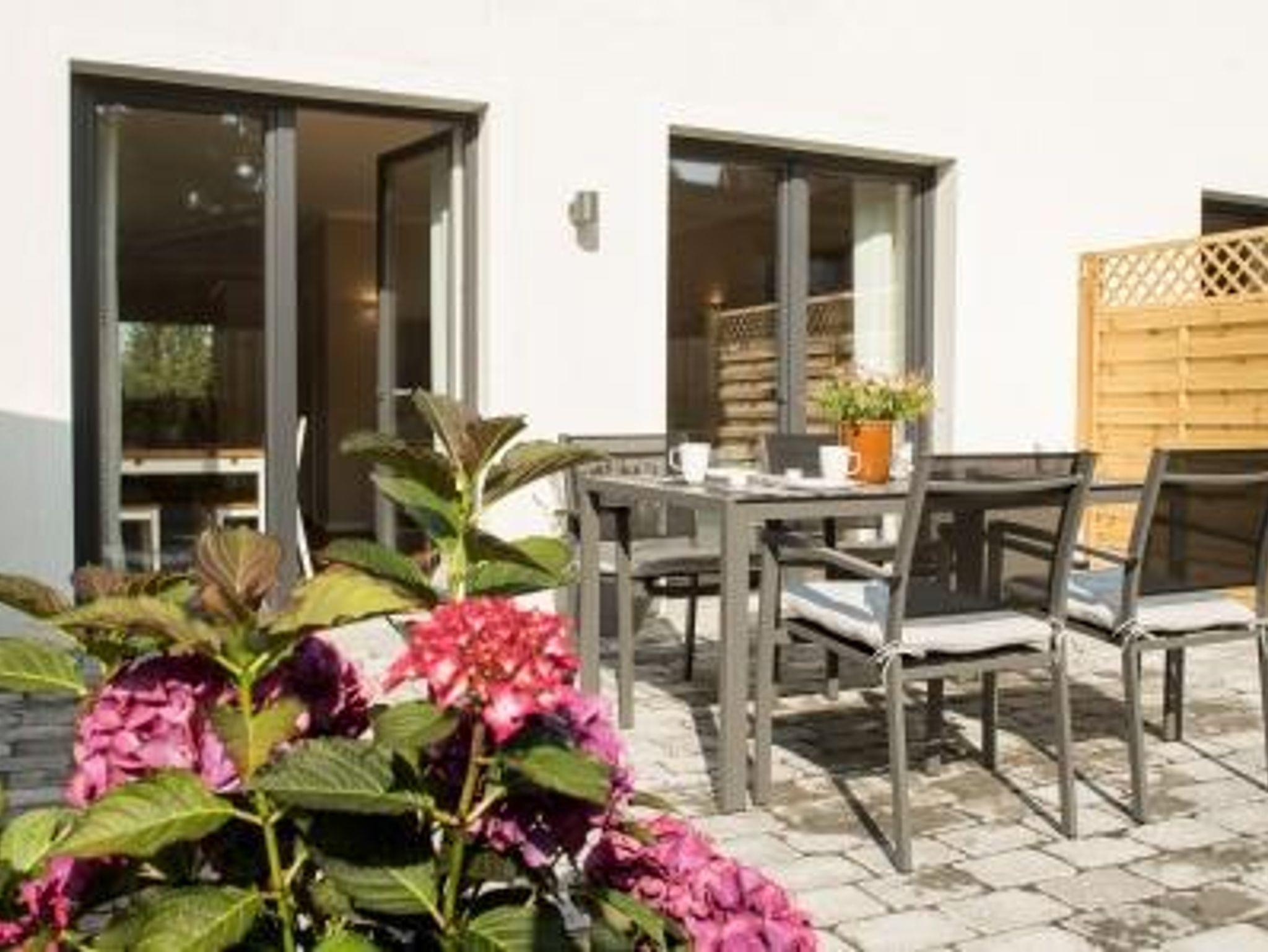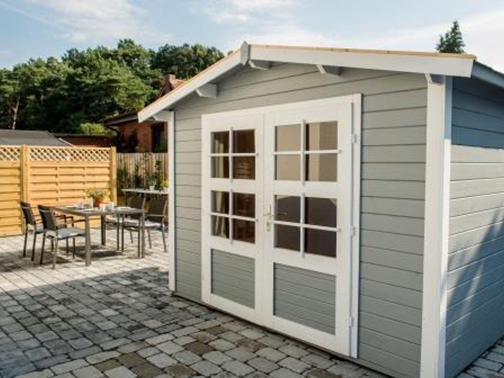 Bei gutem Wetter lädt die Terrasse mit Grill zum wohlfühlen und relaxen ein. Im Gartenhaus finden alle Gartenmöbel und auch mitgebrachte/ gemietete Fahrräder ihren Platz.