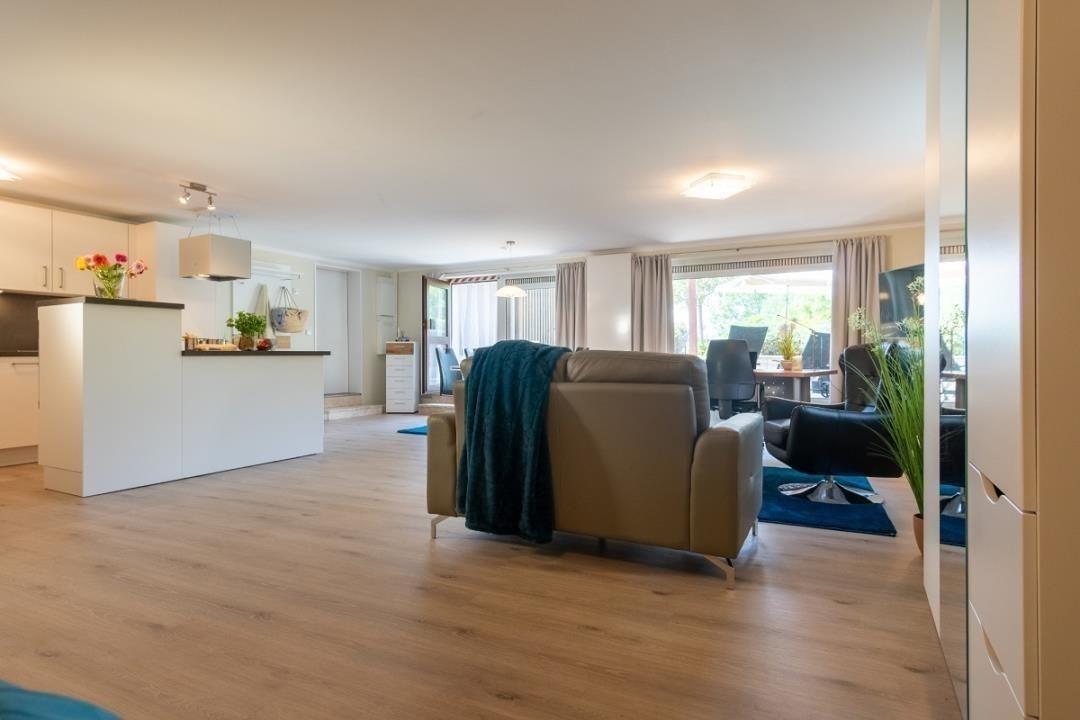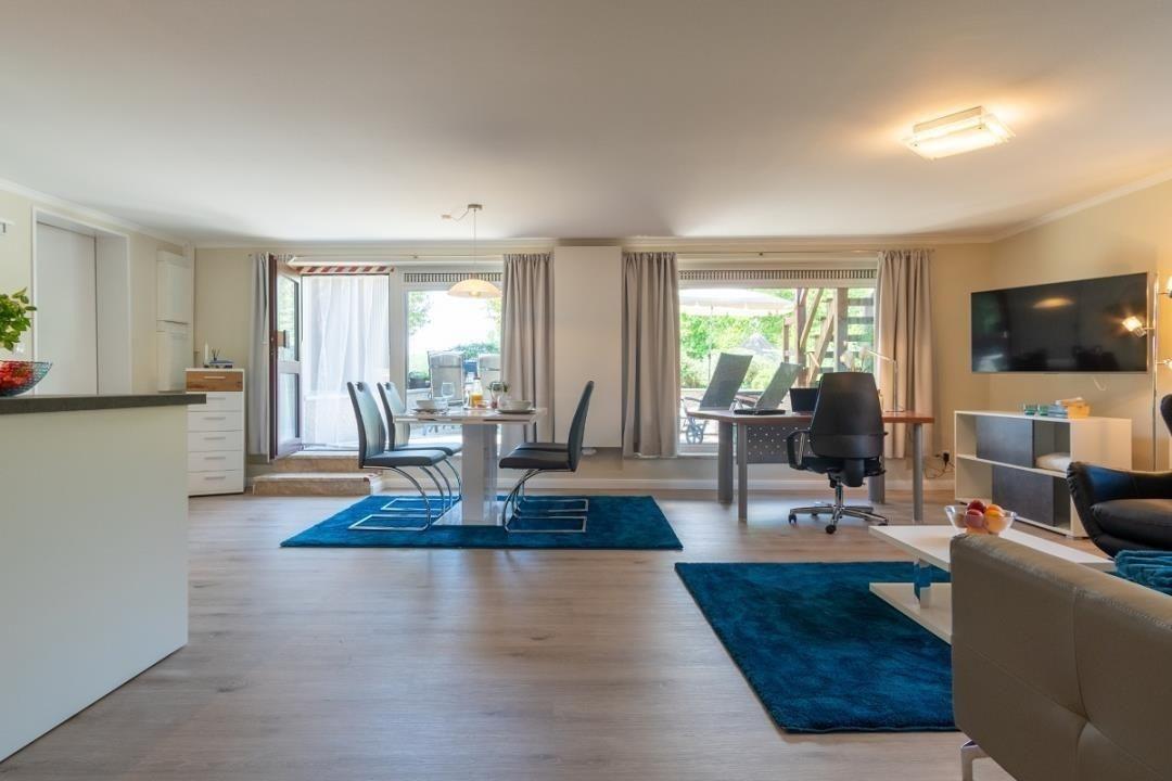 Moderne Ferienwohnung mit großer Terrasse und Seeblick in Bosau am Plöner See, ideal für erholsame Tage zu zweit.