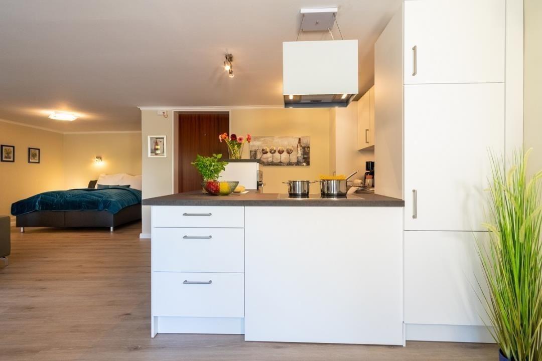 Willkommen im Haus "Schwanensee" am großen Plöner See. Die frisch renovierte Ferienwohnung befindet sich im Erdgeschoss des Hauses und wurde liebevoll modernisiert. Im lichtdurchfluteten Wohnbereich erwartet Sie ein gemütliches Doppelbett, ein Flatscreen-TV, sowie eine kleine Essecke direkt am Terrassenfenster. Direkt daneben befindet sich der Zugang zur großen Terrasse mit direktem Blick zum Bischofsee. Die offene Küchenzeile ist komplett eingerichtet. Besteck, Essgeschirr, Töpfe und Pfannen sind ausreichend vorhanden. Außerdem steht Ihnen neben einer Kaffeemaschine, einem Wasserkocher und einem Toaster auch noch eine Geschirrspüler zur Verfügung. Das angrenzende geräumige Duschbad verfügt über ein WC, ein Waschbecken mit großem Spiegel, sowie eine Dusche mit Glaskabine.