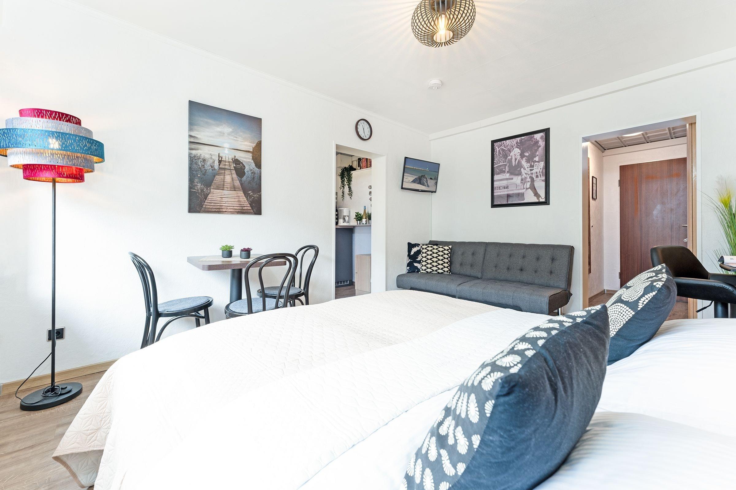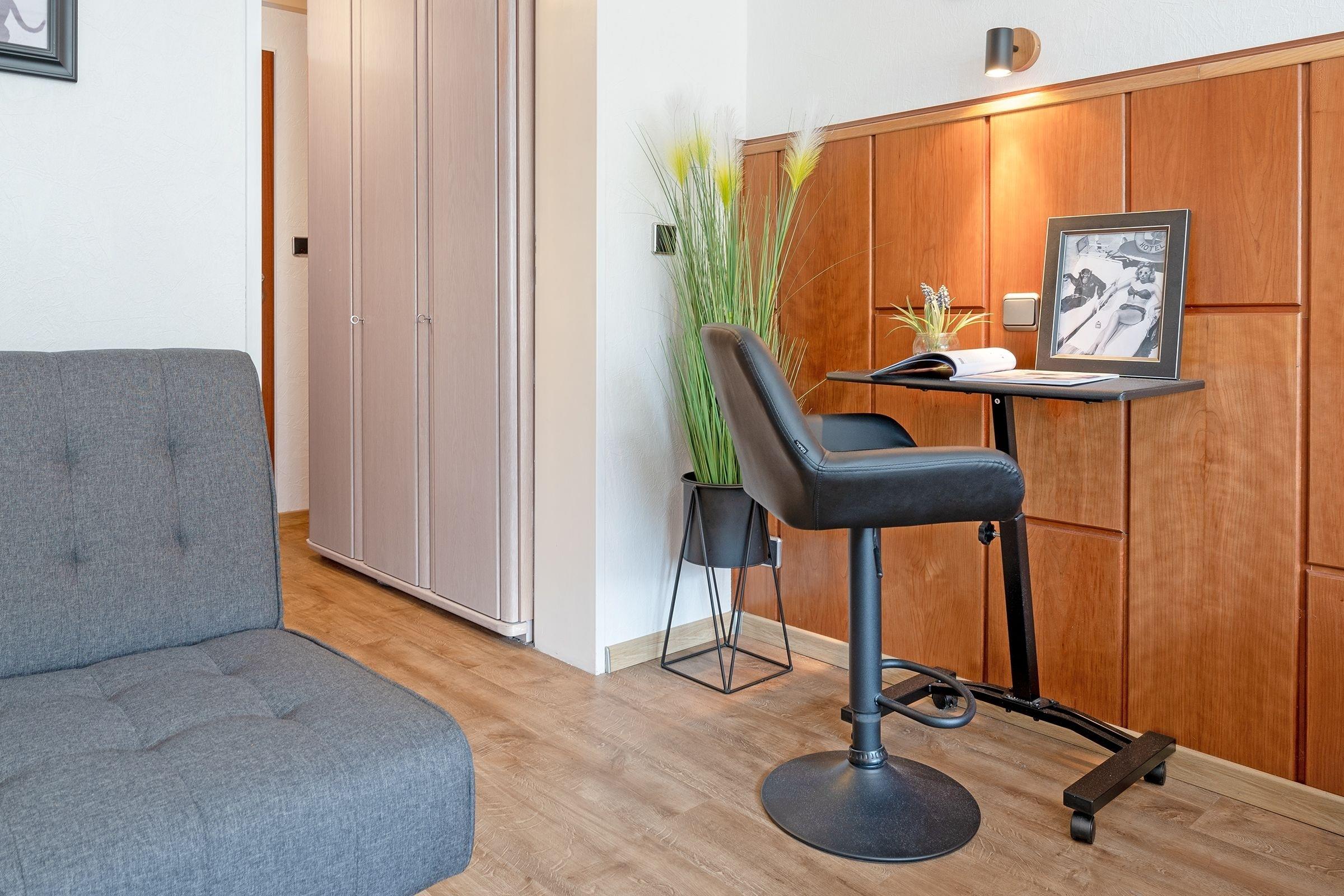 Der Wohn/Schlafbereich ist mit einem gemütlichen Doppelbett (2x 90x200 cm), einem Sofa sowie einem kleinen Laptop-Schreibtisch ausgestattet. In der gut ausgestatteten Küchenzeile geht das Kochen ganz wie von selbst, anschließend können Sie die zubereiteten Mahlzeiten am Essplatz gemeinsam einnehmen. Nach einem erlebnisreichen Urlaubstag entspannt es sich herrlich in der Badewanne im tageslichthellen Badezimmer. Für Unterhaltung sorgen der vorhandene WLAN-Anschluss sowie ein Flachbild-TV.