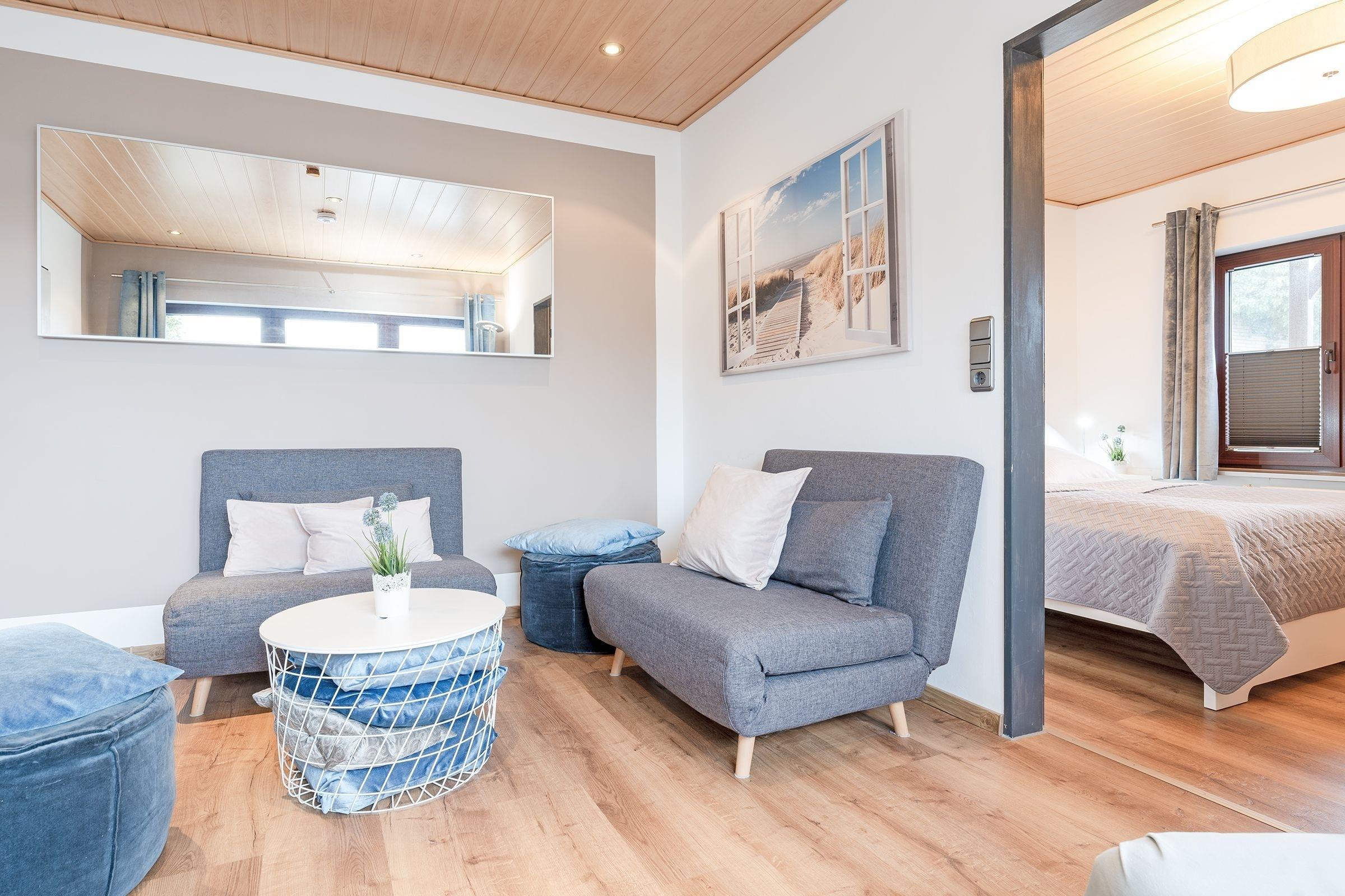 Die schöne Holsteinische Schweiz ist immer eine Reise wert. Der perfekte Ausgangspunkt für Ausflüge ist die Ferienwohnung Seezauber - nur rund 80 Meter vom Plöner See entfernt. Die liebevoll ausgesuchte Einrichtung sorgt dafür, dass Sie sich sofort wohlfühlen. Bei schönem Wetter lädt die möblierte Terrasse mit Strandkorb zum Entspannen ein. Die kleine Küche mit schicker Essecke verfügt über Extras wie Induktionsherd, Senseo-Maschine sowie Geschirrspüler. Im gemütlichen Wohn-/Schlafbereich befinden sich 4 bequeme Sessel - 2 davon lassen sich für die Nacht in 2 Betten (je 200x100 cm) umfunktionieren. Im separaten Schlafzimmer gibt es zudem ein Doppelbett (2x 100x200 cm), das angenehme Träume verspricht. Im Badezimmer steht eine Badewanne mit Duschfunktion.
