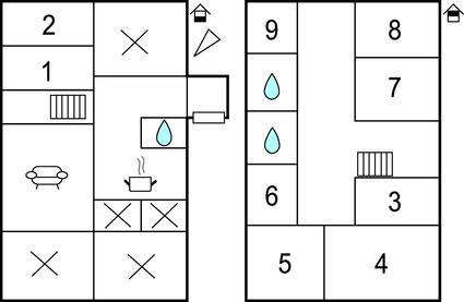 Badezimmer 8m2 (nr. 1) - WC. Warmes und kaltes Wasser. Dusche