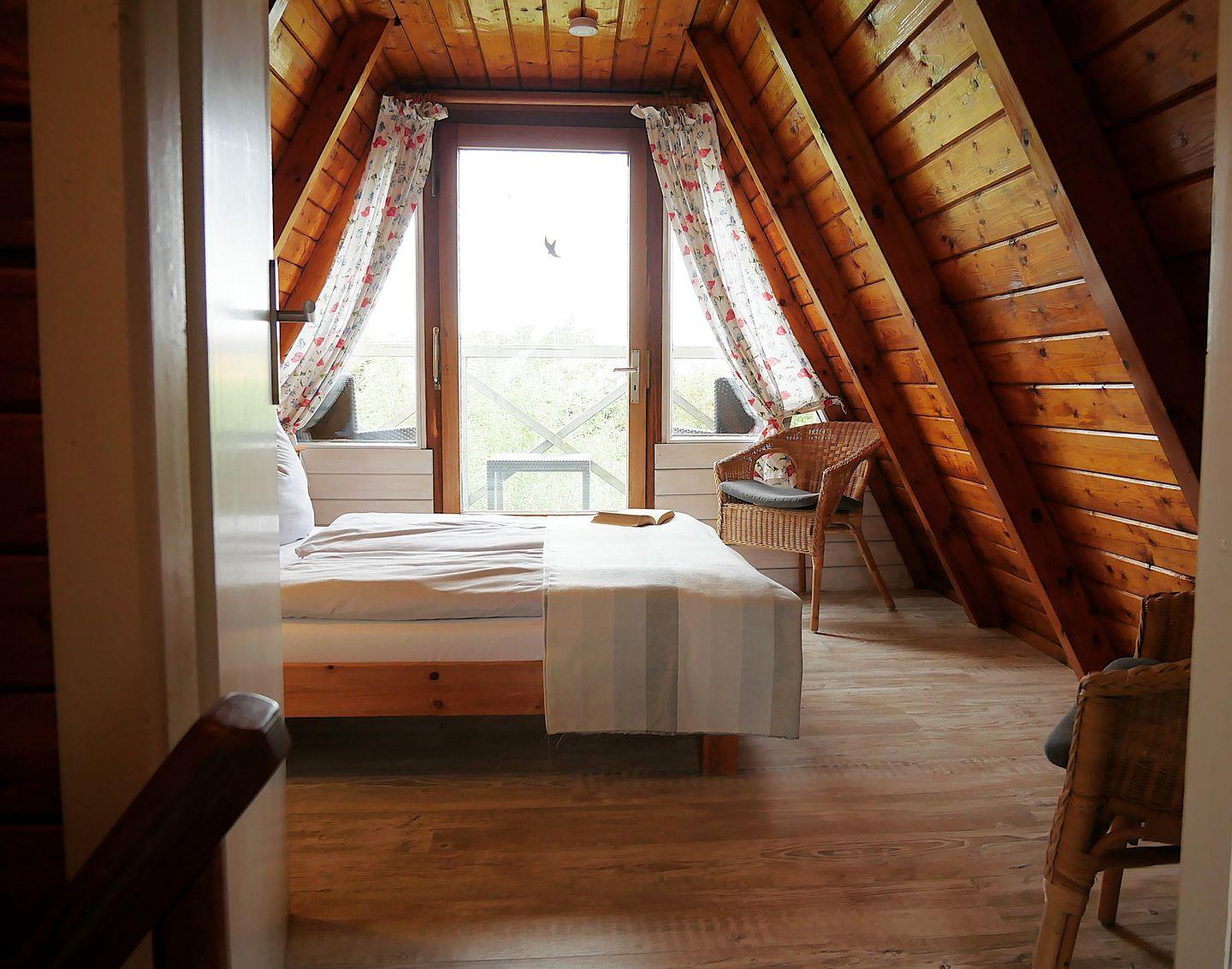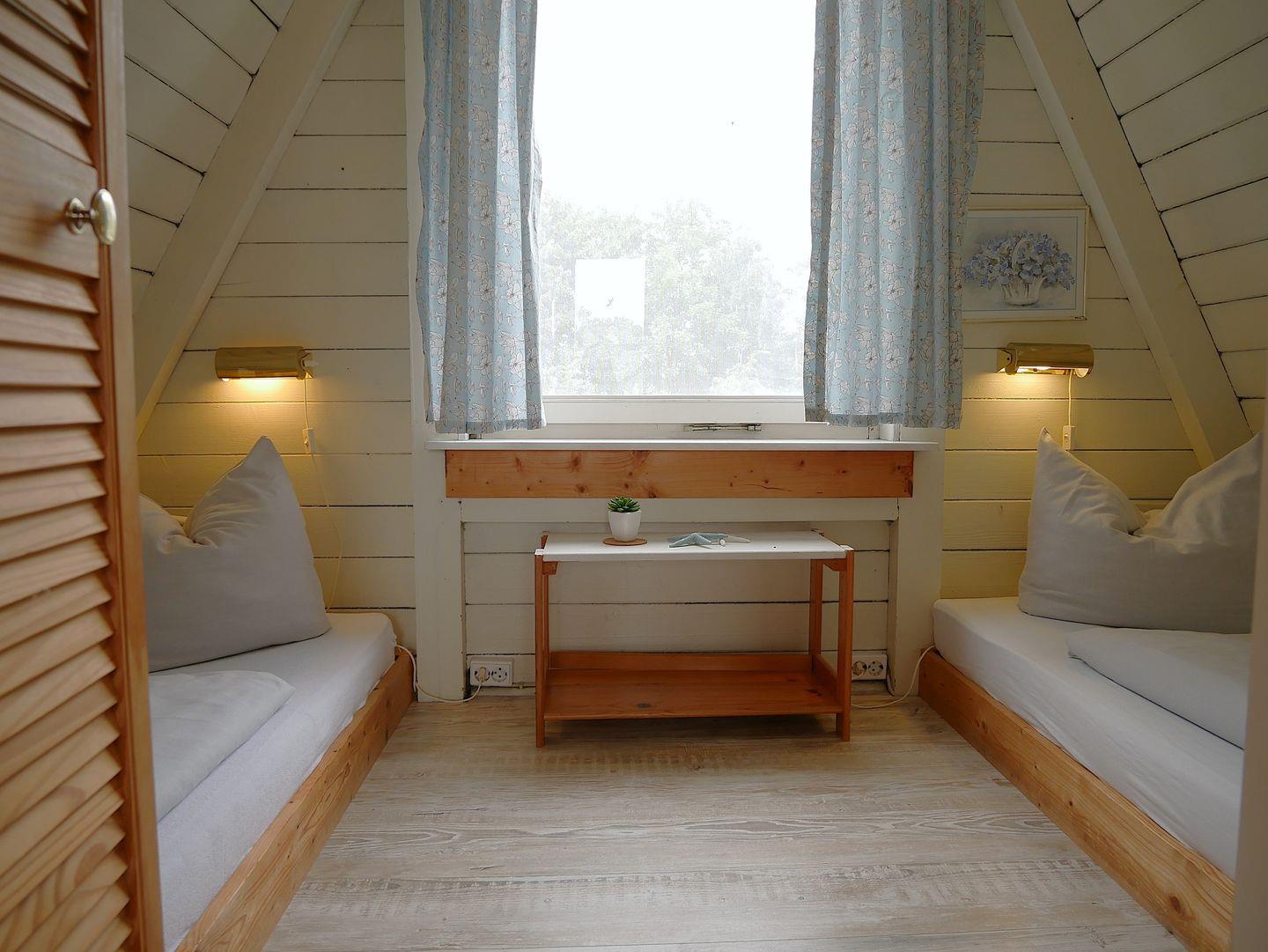 Im Obergeschoss des Hauses befinden sich die beiden separaten Schlafzimmer, die entweder mit einem französischen Doppelbett (160x200 cm) oder zwei Einzelbetten (Bodenbetten 90x190 cm) ausgestattet sind. Für Ihre Garderobe steht ebenfalls Stauraum zur Verfügung. Das Hauptschlafzimmer bietet Ihnen außerdem einen Balkon in südlicher Ausrichtung mit Meerblick auf dem Sie entspannte Stunden genießen können.