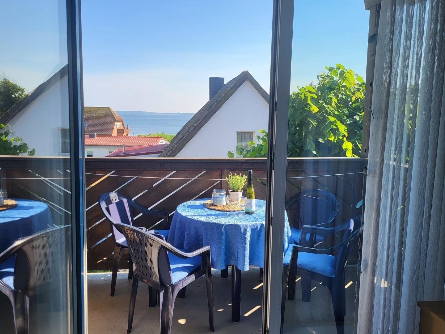Gemütliche Ferienwohnung Boddenblick in Breege mit Südbalkon und Blick auf den Bodden.