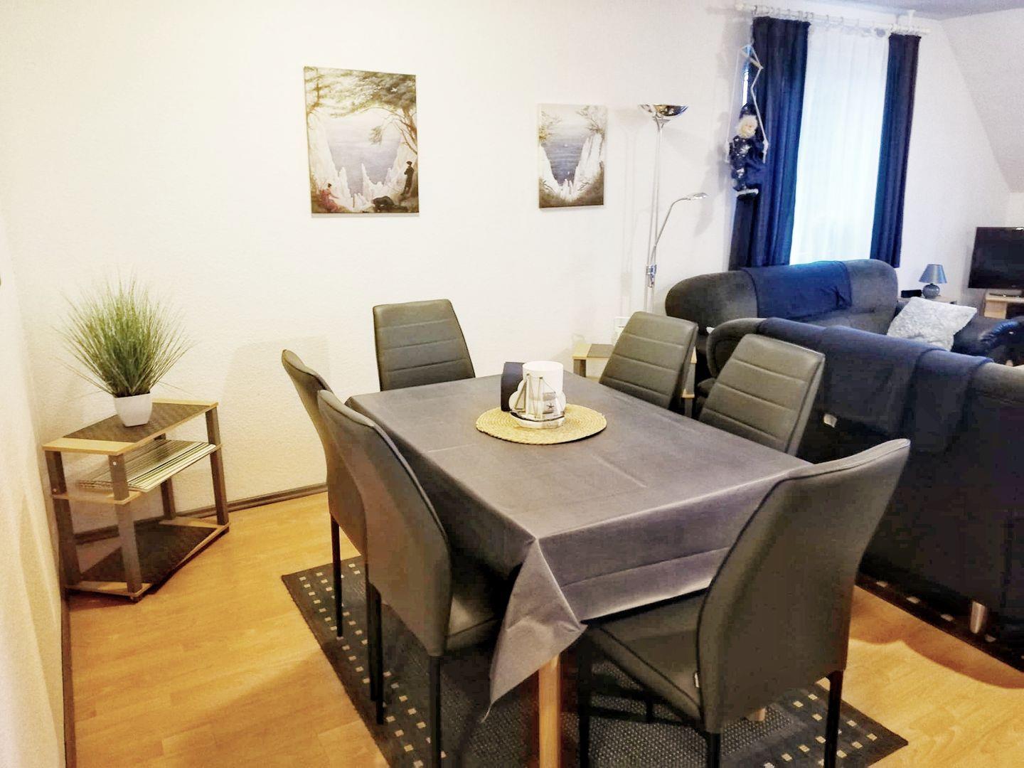 Gemütliche Ferienwohnung mit Balkon in Breege, ideal für Familienurlaub und nahe am Strand.