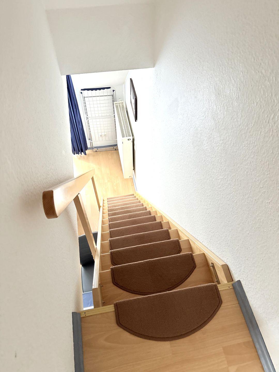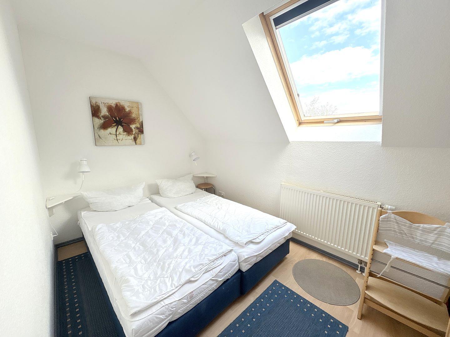 Über eine Treppe gelangen Sie in die Maisonette, wo sich zwei gemütliche Schlafzimmer befinden. Die beiden Schlafzimmer verfügen jeweils über zwei Einzelbetten.