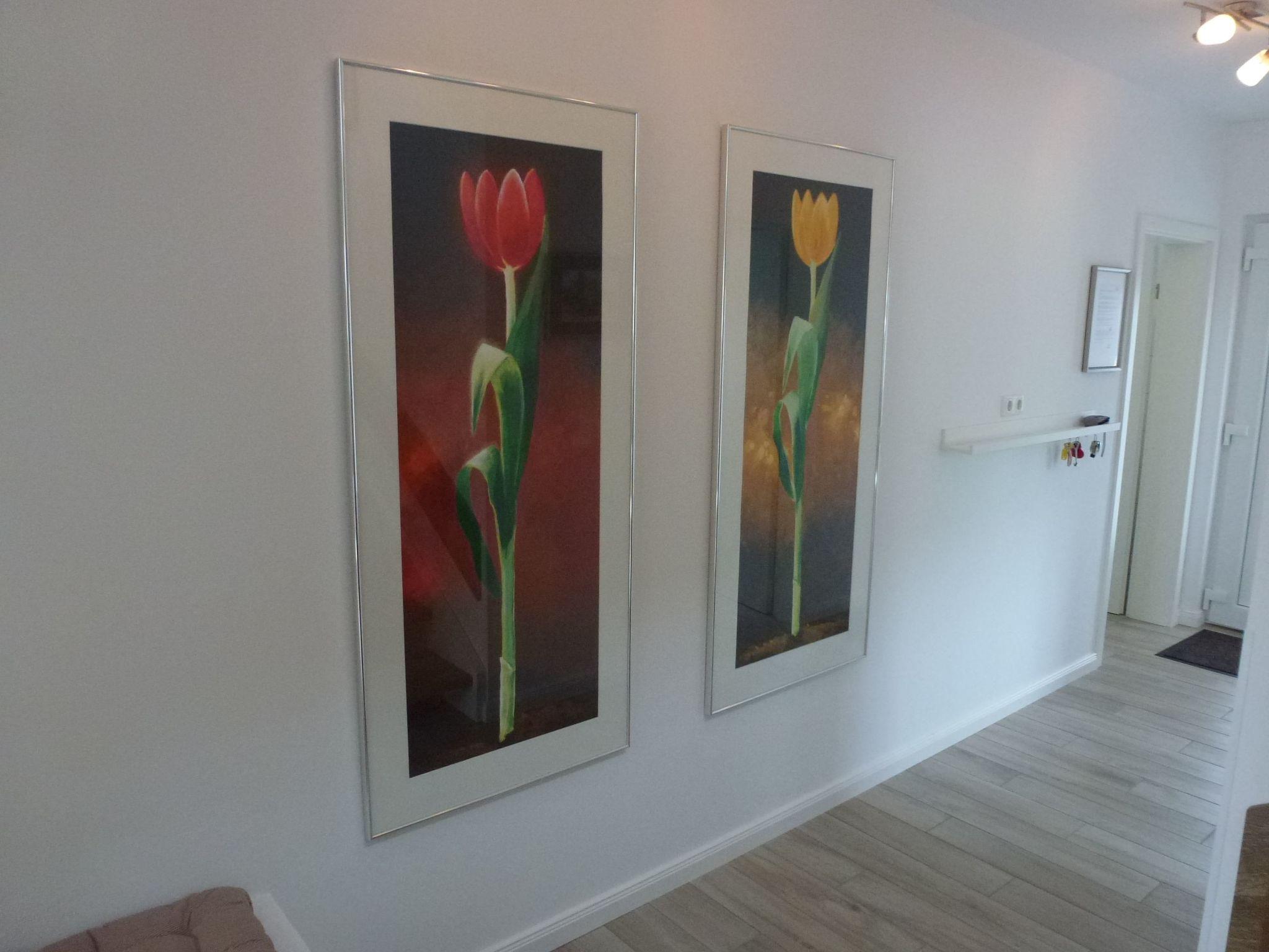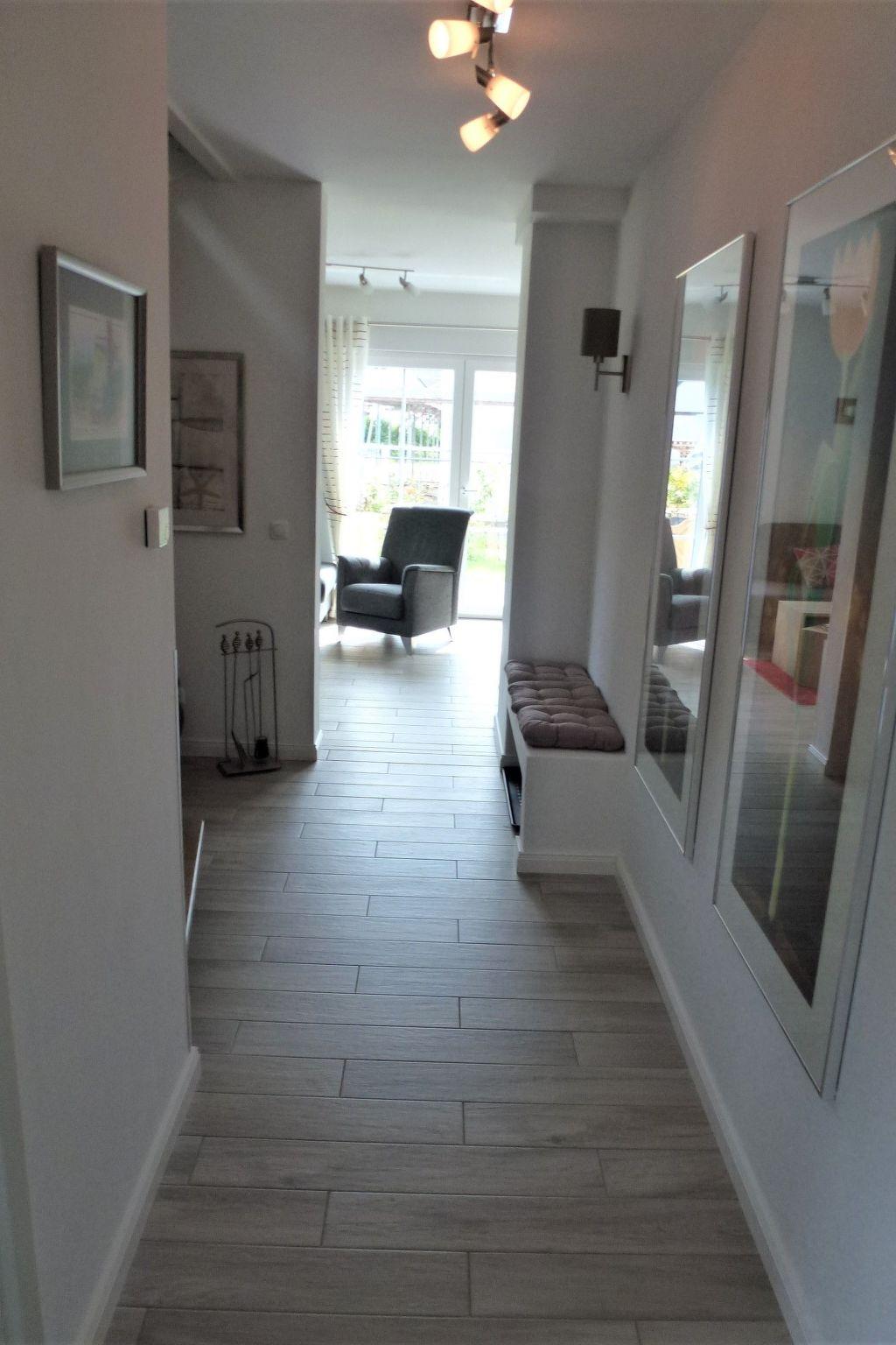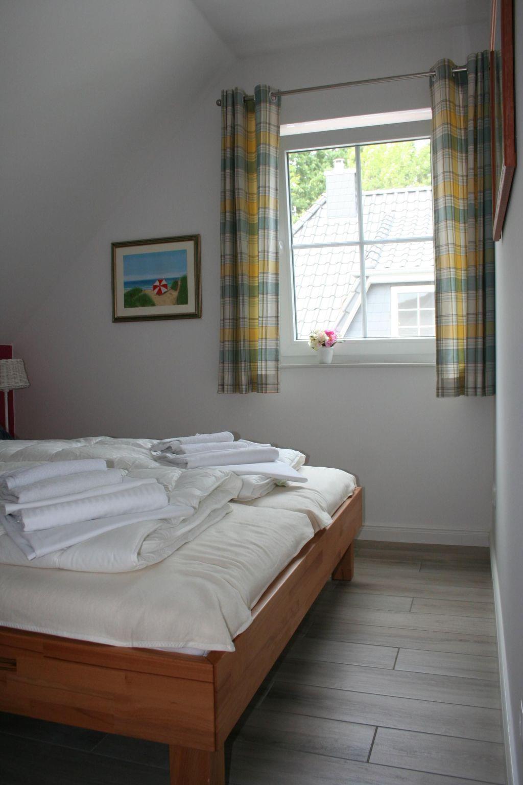 Das Haus bietet auf circa 98 m² einen großzügigen Wohn-/Essbereich, eine hochwertige Küche mit allem, was das Herz begehrt, ein Sauna-Bad im Erdgeschoss mit bodengleicher Dusche, einen Hauswirtschaftsraum mit Waschmaschine, Bügelbrett, Bügeleisen und auch Wäscheständer sowie einen kleinen Arbeitsplatz unter der Treppe. Alles ist für mindestens sechs Personen ausgelegt. Vom Raclettegerät über ein Fondueset, Kaffeemaschine, Toaster, Wasserkocher, Rotwein- Weißwein, Sekt- und Biergläser, es soll an nichts fehlen. Das Abwaschen erledigt dann der Geschirrspüler. Beim Bummeln durch Galerien und Bilderläden haben die Besitzer wirklich schöne, dekorative Sachen eingekauft. Natürlich besitzt das Ferienhaus die beste Technik. Im ganzen Haus gibt es eine Fußbodenheizung, WLAN, Digital-Kabel-TV, DVD-Player, Radio sowie CD-Player und hoffentlich ausreichend Steckdosen, um das Handy aufzuladen. Eine klasse Idee ist auch, dass es für die nicht so warme Jahreszeit einen Kaminofen und eine Sauna im Haus gibt. Genau das Richtige nach einem Herbst- oder Winterspaziergang am Strand. Die Treppe ins Obergeschoss ist wirklich schick und praktisch ist auch, dass ein Treppenschutzgitter vorhanden ist. Im Obergeschoss befinden sich drei Schlafzimmer. Das erste Schlafzimmer verfügt über ein Doppelbett mit 180 x 200 cm, ein zweites TV-Gerät, damit bloß kein Streit im Urlaub um die Sportschau ausbricht, und einen begehbaren Kleiderschrank. Alle Einrichtungsdetails sind im Grundriss gut zu erkennen. Das zweite Schlafzimmer besitzt ein Doppelbett mit 160 x 200 cm und im dritten Schlafzimmer stehen zwei Einzelbetten mit 90 x 200 cm. Selbstverständlich stehen auch ein Kindereisebett für den kleinen Nachwuchs und ein Kinderhochstuhl zur Verfügung. Kinder sollen sich übrigens in diesem Haus besonders wohl fühlen. Deshalb gibt es auch eine Auswahl von Spielzeug und Büchern, genauso wie einen Bollerwagen und Strandspielzeug. Im Obergeschoss befindet sich dann noch das große Bad mit Badewanne, WC und Doppelwaschtisch.