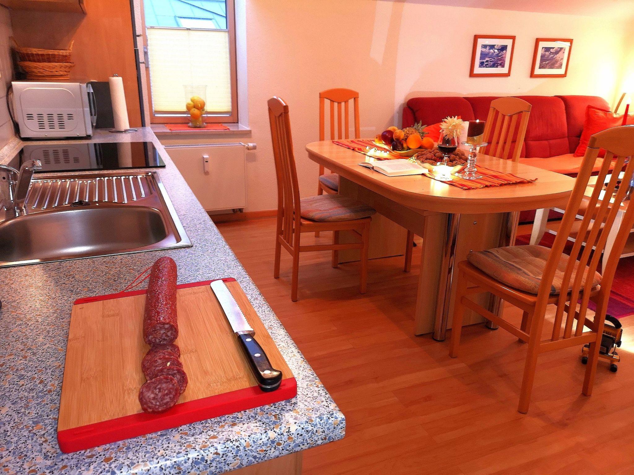Innen erwartet Sie ein großzügiges Wohnambiente, das keine Wünsche offen lässt. Setzen Sie sich in die bequeme Couchlandschaft oder den gemütlichen Ohrensessel mit Fußbank und genießen Sie Ihre Lieblingsshow auf dem Smart-HD-Flachbildschirm. Eine optimal ausgestattete Küchenecke mit Kaffeemaschine, Wasserkocher, Cerankochfeld, Backofen, und Kühlschrank lädt ein, kulinarische Highlights zu zaubern, während der angrenzende Essbereich zum gemeinsamen Verweilen einlädt. Das elegante Schlafzimmer bietet mit seinem kuscheligen Doppelbett, praktischen Nachtschränkchen, und einem geräumigen Kleiderschrank ideale Voraussetzungen für erholsame Nächte. Das Bad ist komfortabel mit Dusche, Badewanne, WC, und Bidet ausgestattet. Für unsere kleinsten Gäste halten wir ein Kinderreisebettchen und einen Hochstuhl bereit.
