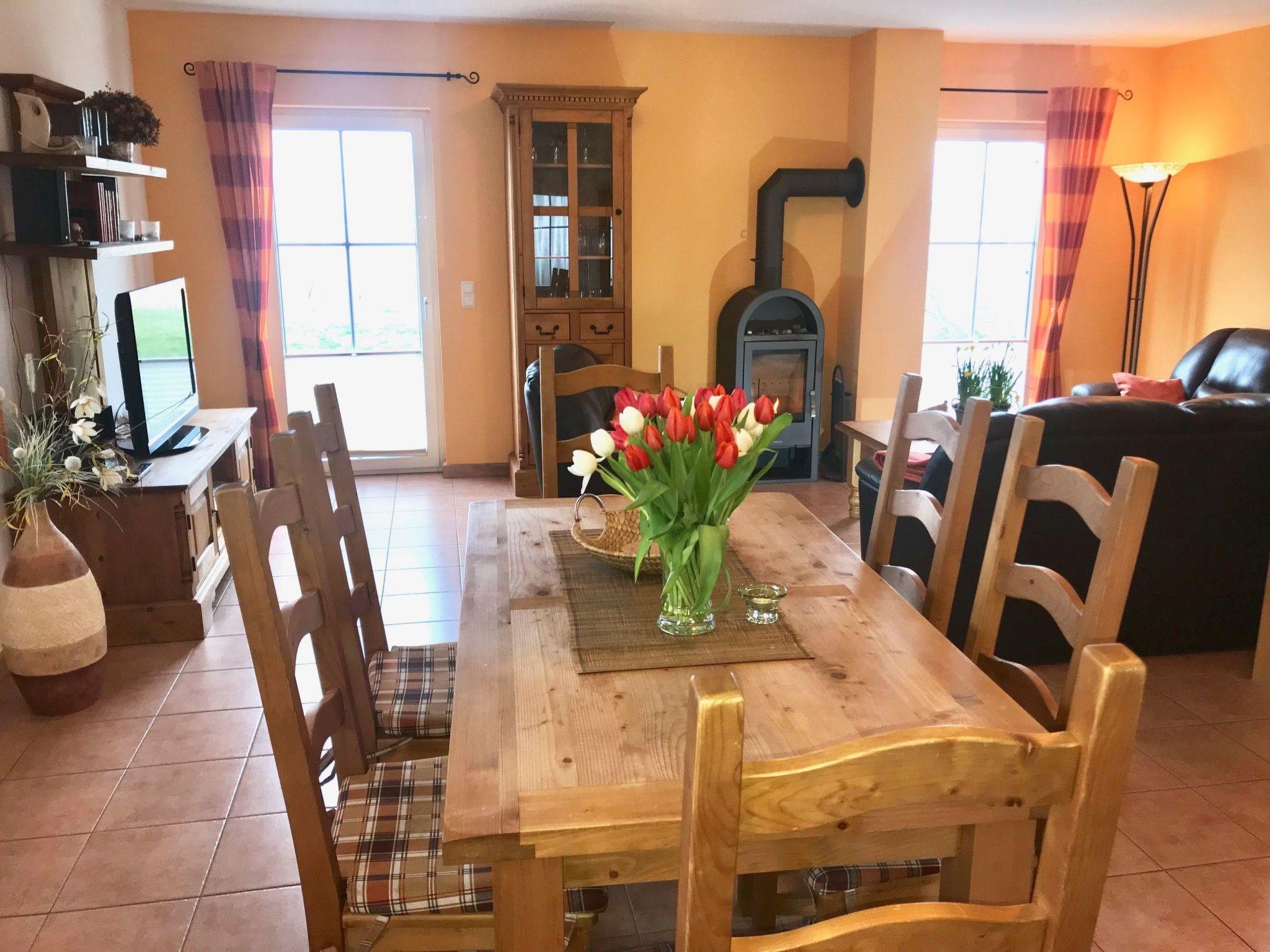Im Inneren des Hauses sorgen drei gemütliche Schlafzimmer und zwei voll ausgestattete Badezimmer für den Komfort und die Privatsphäre aller Gäste. Ein Kamin im Wohn-Essbereich lädt zu geselligen Abenden ein, während die teilweise vorhandene Fußbodenheizung für eine angenehme Wärme sorgt. Praktische Annehmlichkeiten wie eine Waschmaschine zur alleinigen Nutzung, ein Cerankochfeld, eine Kaffeemaschine, ein Spülmaschine und ein Wasserkocher machen den Aufenthalt auch bei einem längeren Besuch äußerst komfortabel.