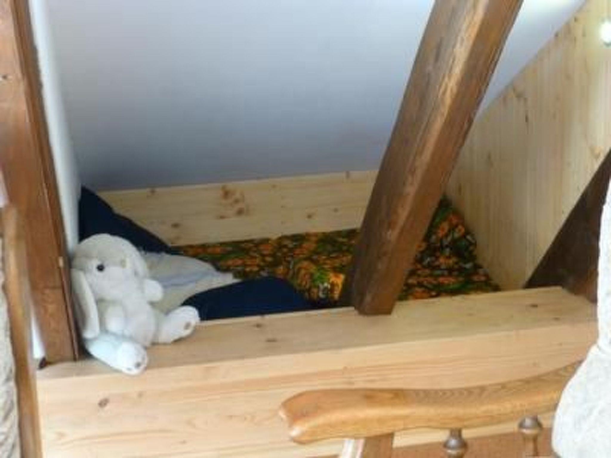Sonstige Wohnzimmerausstattung : Im Wohnzimmer befindet sich die Spielecke unter der Gaube. Eine Couchgarnitur mit 6 Sitzplätzen und einem Couchtisch und eine weitere Sitzgelegenheit mit Leselampe. Gesellschaftsspiele, Kinderbücher und Kinderspielzeug sowie Sat-TV und DVD player sind vorhanden. Die Treppe zur Küche kann mit einer Kindersicherung versehen werden, so das auch Kleinstkinder unbehelligt krabbeln können.