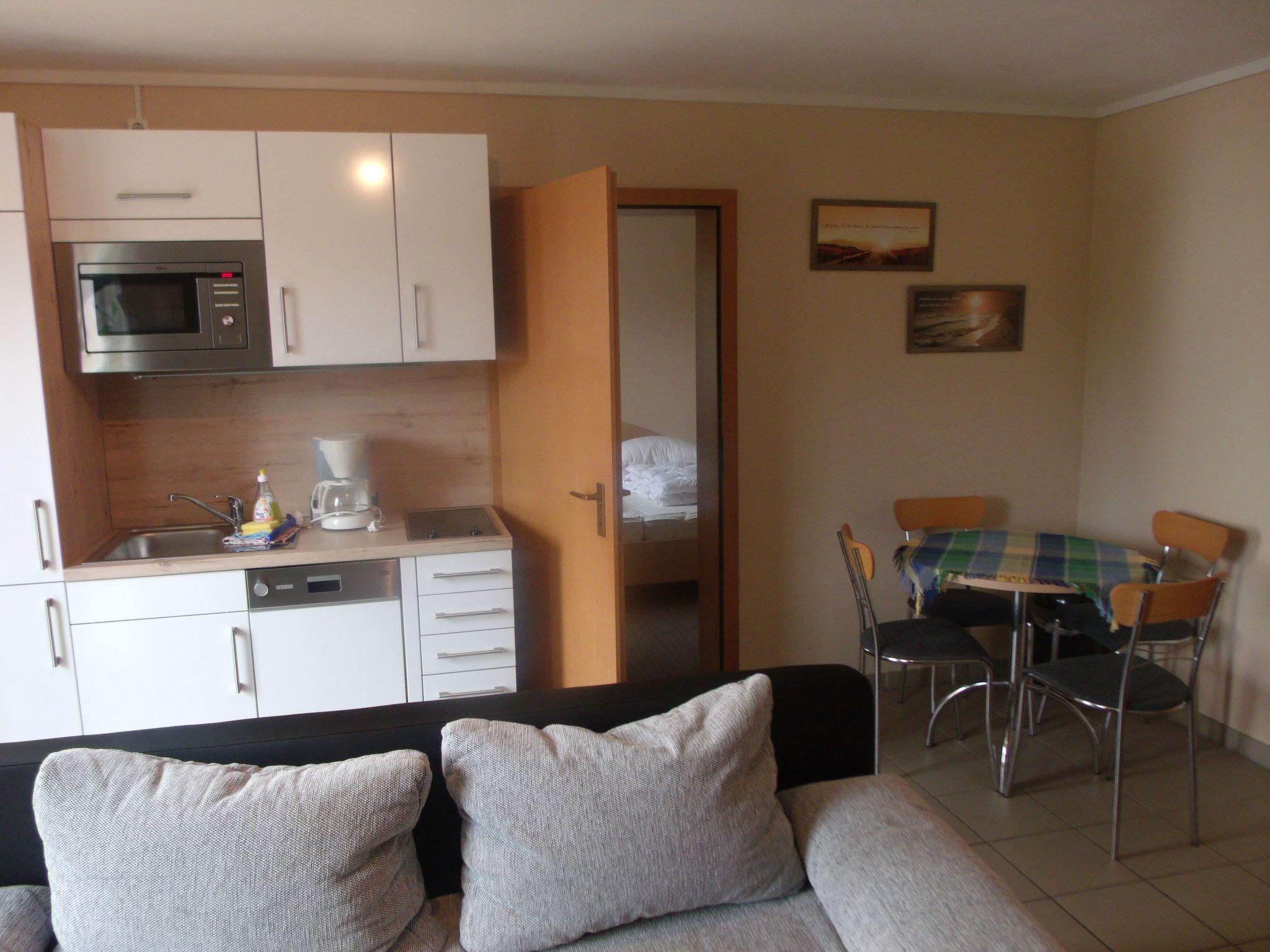 Das Appartement liegt im EG und ist ca. 50 m² groß, Schlafzimmer mit 1,80 Doppelbett, , Wohnbereich mit Sat-TV, Großer Couch, Sessel, einer Küchenzeile mit 2-Platten-Cerankochfeld, Spülmaschiene, Mikrowelle, Kaffeemaschine und Essecke, sowie ein angrenzendes Bad mit Dusche und WC.