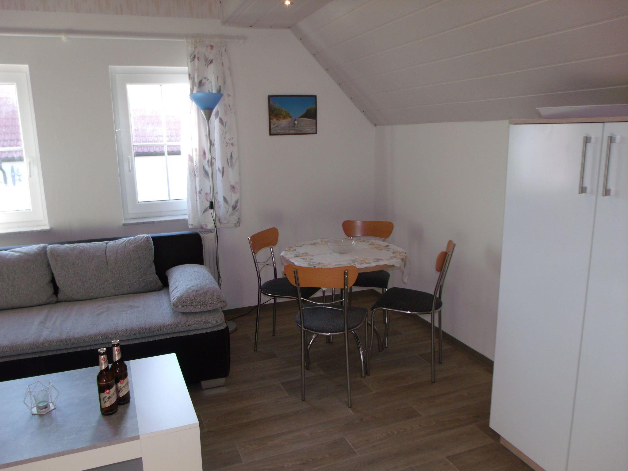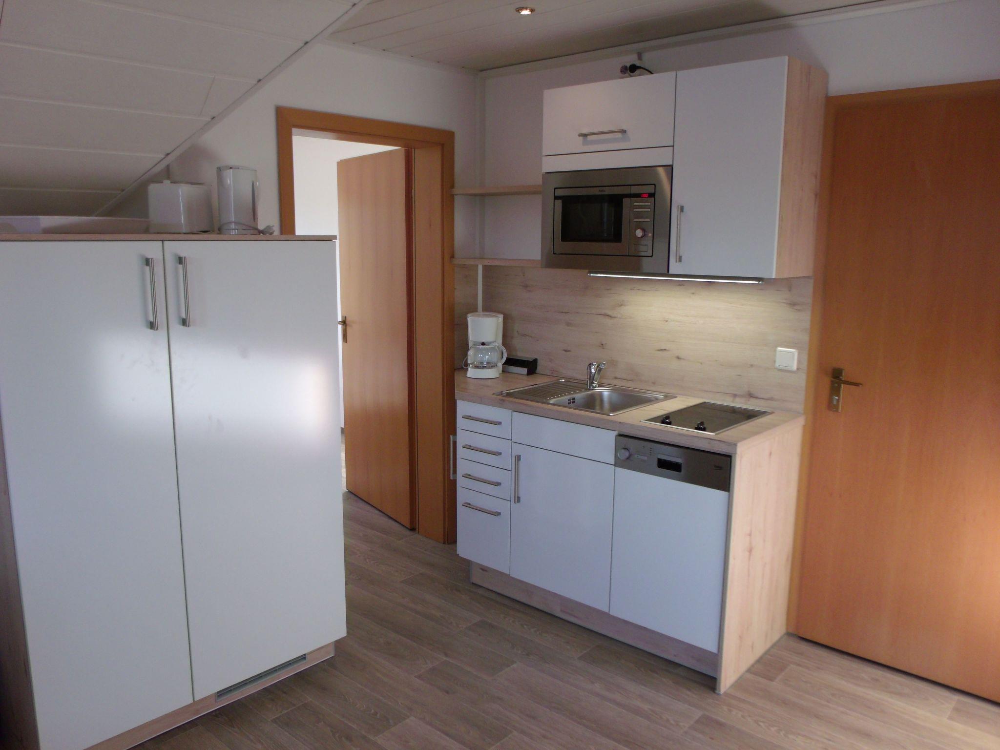 Das Appartement befindet sich im OG. Im Wohnbereich finden Sie eine gemütliche Doppelbettcouch und 2 Sessel, Sat-TV, eine moderne Küchenzeile mit 2-Platten-Cerankochfeld, Spülmaschiene, Kühlkombi, Mikrowelle und üblichen Geräten. Im Schlafzimmer steht ein 1,60 Doppelbett. Das Bad verfügt über Dusche,Waschbecken und WC.