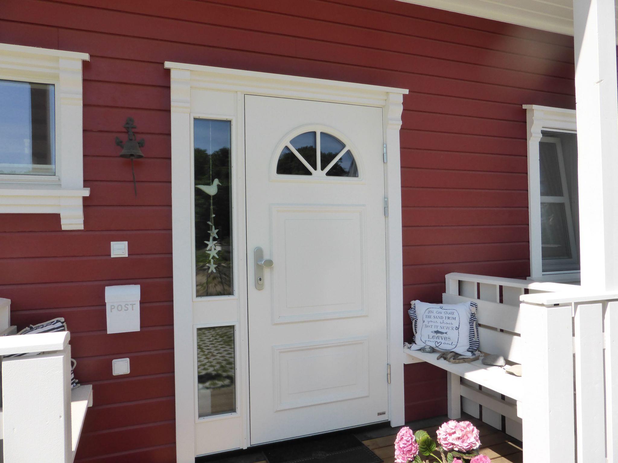 Der komplett eingefriedete Außenbereich bietet eine ca. 50 m² große Holzterrasse mit Sitzmöglichkeiten sowie einen Garten zur alleinigen Nutzung. Auf der Terrasse stehen Ihnen ein Holztisch mit Eckbank und Stühlen, vier Liegen, zwei Sonnenschirme sowie eine Hängematte zur Verfügung. Kinderschaukel, Kinderbank und Fahrradständer runden die kinderfreundliche Ausstattung des Ferienhauses ab. Weiterhin steht im Gartenbereich ein Grill für gemütliche Grillabende bereit. Zudem befindet sich auf dem ca. 500 m² großen Grundstück ein abschließbares Gartenhaus mit Bollerwagen und Strandspielzeug. Es können ca. 3 PKW können auf dem Grundstück parken.