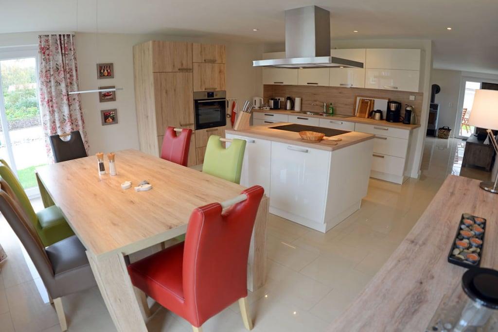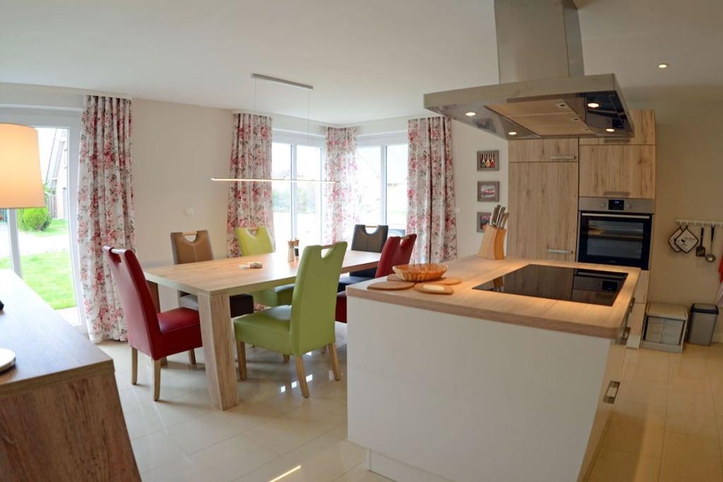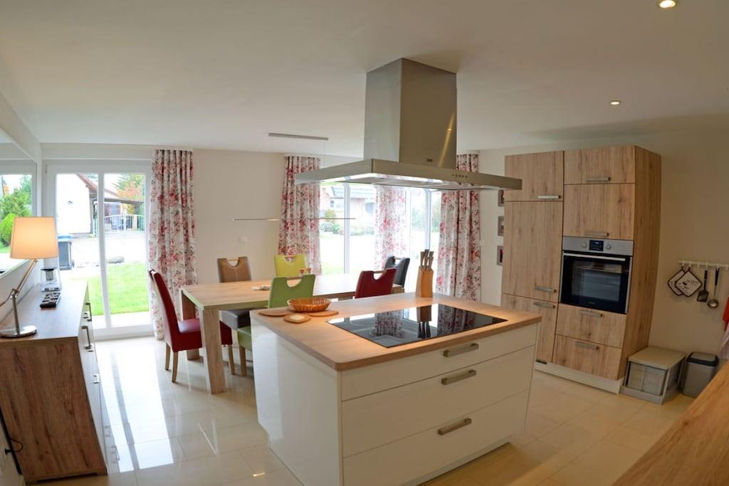 Erdgeschoss: großzügiger Wohnbereich mit Kamin, gemütliche Couchlandschaft mit Ausziehfunktion und Sessel, TV (Flatscreen) mit Sky und Eurosport 2, Internet Radio/CD, separate komplett ausgestattete hochwertige Einbauküche mit Kochinsel, großer Esstisch für 6 Personen, 4- Plattenherd (Ceranfeld), Backofen, Kühlschrank mit großem Gefrierfach, Geschirrspüler, Mikrowelle und diversen Elektrogeräten, großes Bad mit ebenerdiger Dusche (barrierefrei), WC , Kosmetikspiegel und Waschmaschine Obergeschoss: 1. Schlafzimmer mit einem Doppelbett (180×200), TV (Flatscreen) und Schreibtisch, 2. Schlafzimmer mit zwei Einzelbetten (90×200), TV (Flatscreen) und Schreibtisch, jedes Schlafzimmer verfügt über ein eigenes Bad mit moderner Dusche und WC, Komfort Sauna mit Loungebereich, großer Spiegel-Kleiderschrank mit viel Staumöglichkeiten, Terrasse mit Gartenmöbeln (6 Gartenstühle) mit bequemen Sitzauflagen, Sonnenschirm und Grill sowie Abstellmöglichkeiten (abschließbarer Schuppen) für Fahrräder vorhanden. Grundstück ca. 380 qm, Internet (WLAN) vorhanden, Nichtraucher, Fußbodenheizung im gesamten Haus, elektrische Sonnenmarkisen, Gartenhaus zum Unterstellen von Fahrrädern, 2 PKW-Stellplätze am Haus, Einkaufsmöglichkeiten (real-Inselmarkt), Bäcker und Restaurant in unmittelbarer Nähe, Netto in Altenkirchen ca. 2 km, vom ca. 500 m entfernten Breeger Hafen sind Ausflugsmöglichkeiten per Schiff zur Insel Hiddensee, Boddenfahrten, Kranichfahrten und zu den Störtebeker-Festspielen möglich, Segelschule, optimale Rad- und Wandermöglichkeiten, 1 Haustier (mittelgroß) ist bei uns nach Absprache gestattet (Gebühr 5,- pro Tag)