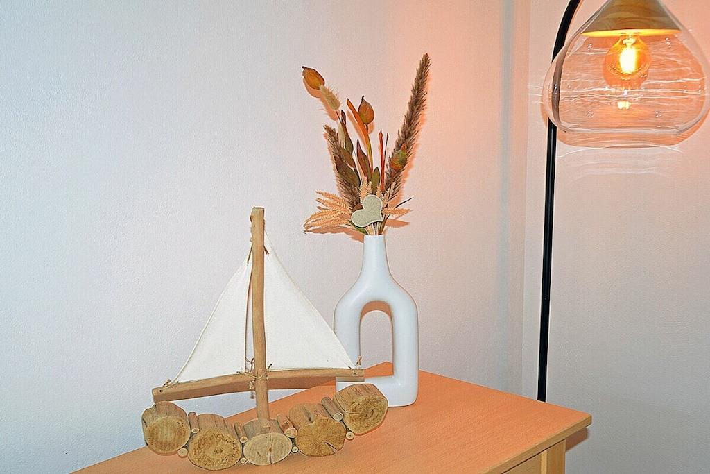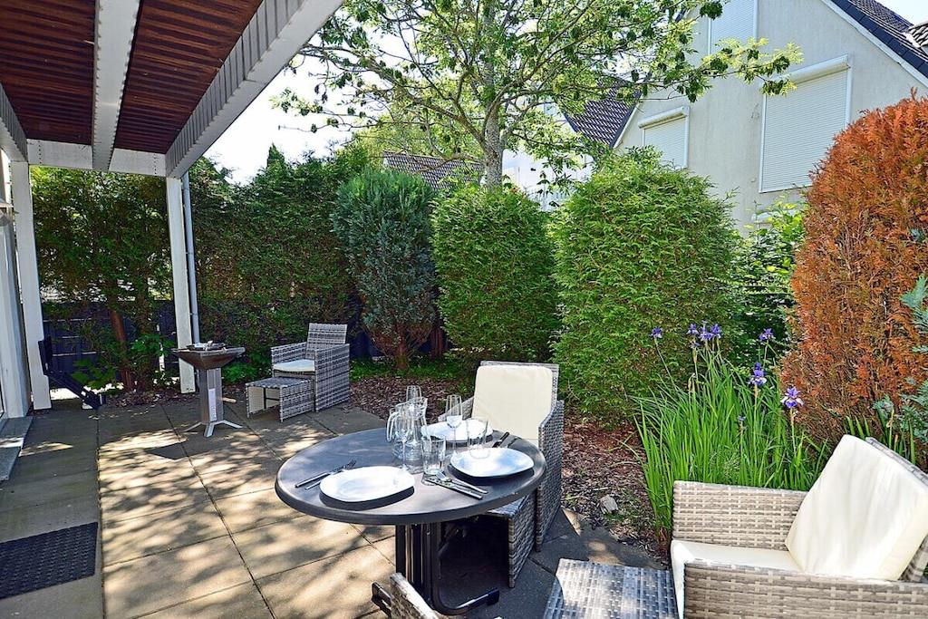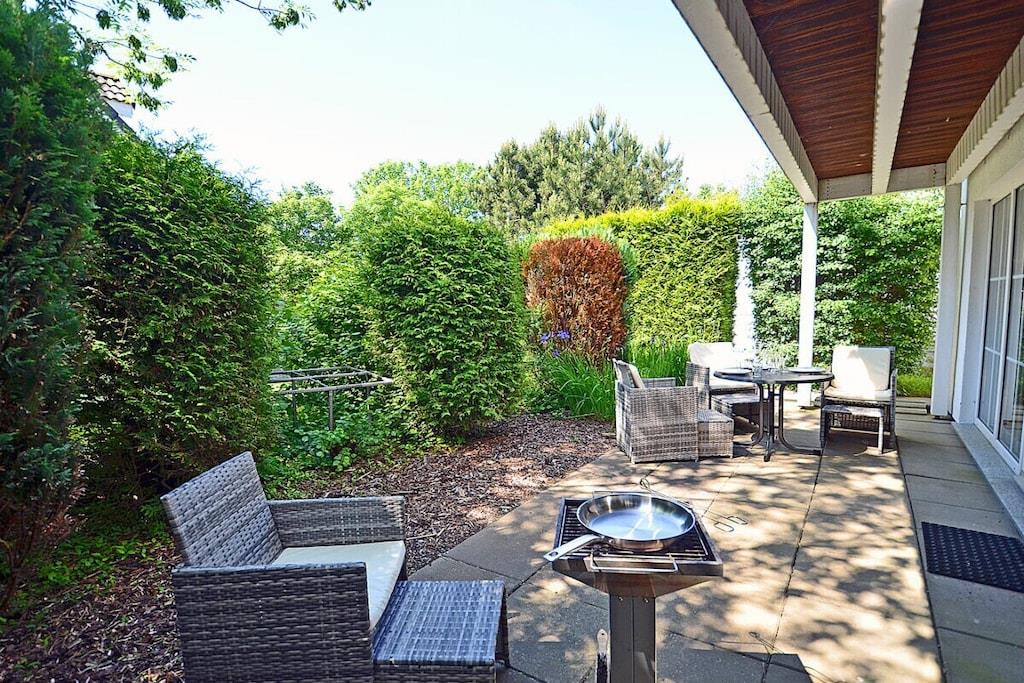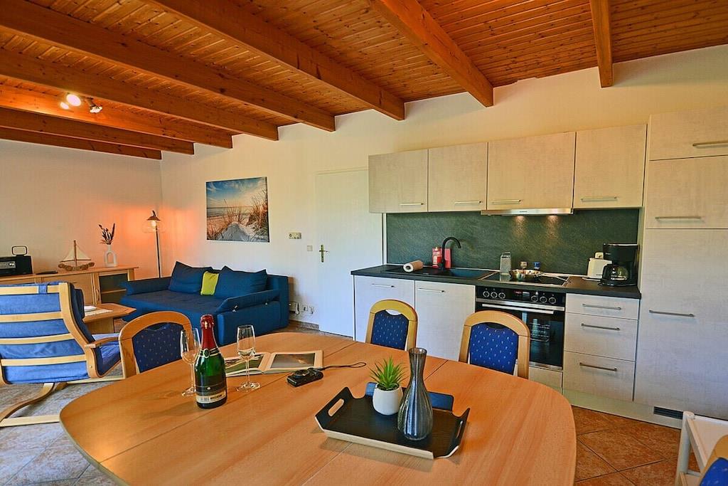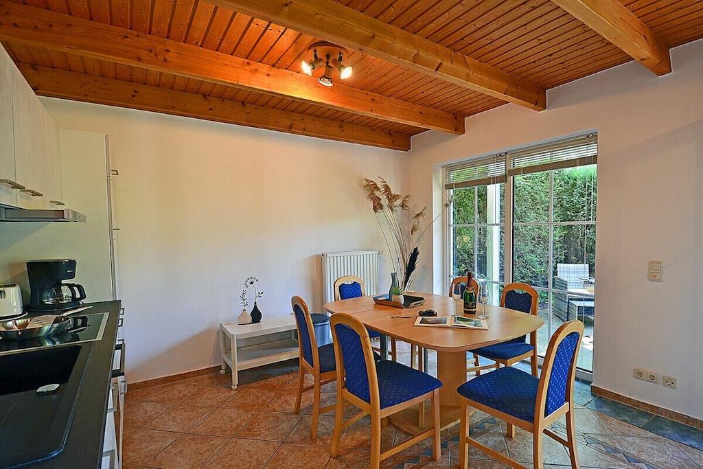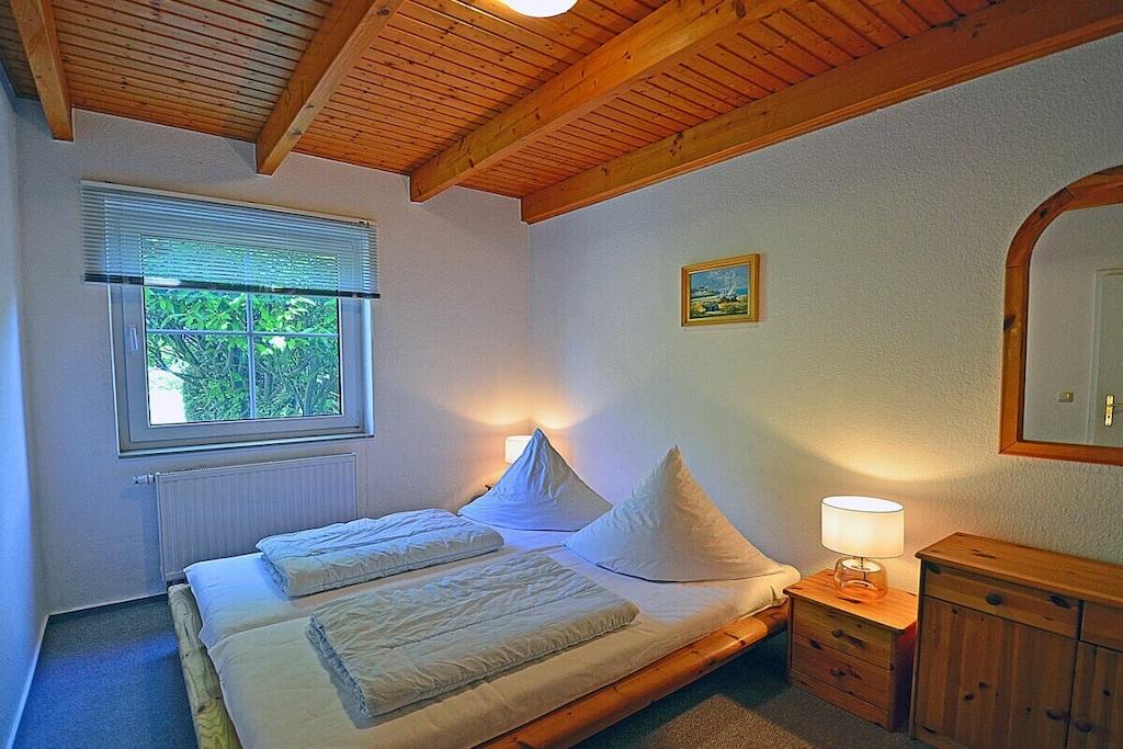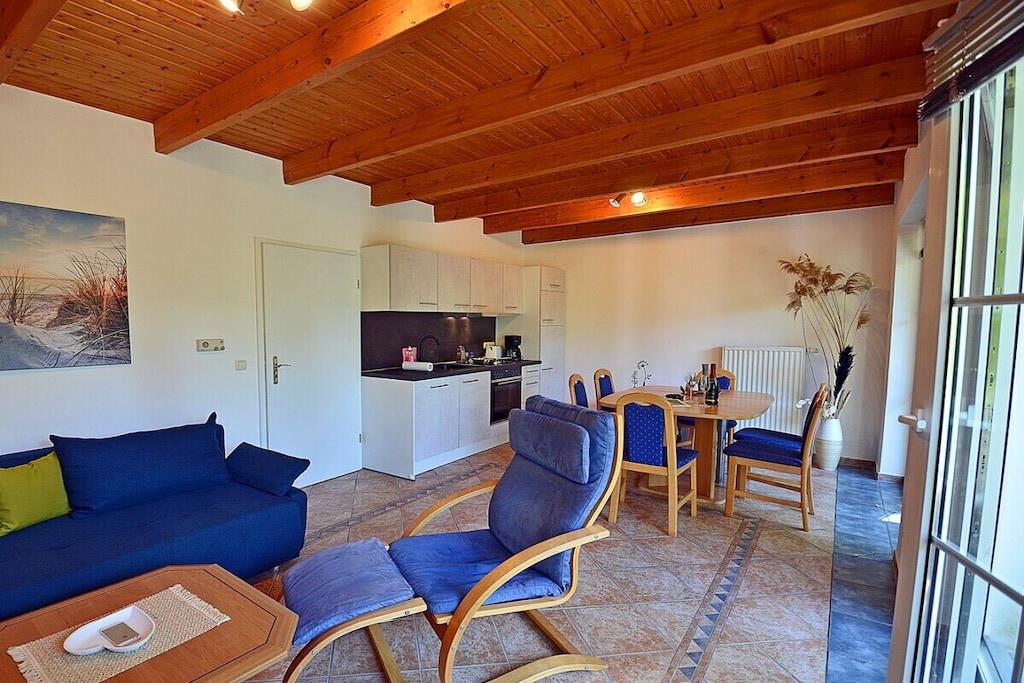 Gemütliches Wohnzimmer mit Essecke und Couch mit Schlaffunktion, TV/Sat (Flatscreen/Smart-TV), Radio/ CD, kostenloses WLAN, Bücher für gemütliche Lesestunden, komplett ausgestattete Küche mit 4 Plattenherd (Induktion) und Backofen, Geschirrspüler, Kühlschrank mit großem Gefrierfach, Filterkaffeemaschine und diversen Elektrogeräten 1. Schlafzimmer mit Doppelbett (2 Matratzen je 80 x 200) und Kleiderschrank, 2. Schlafzimmer mit zwei Einzelbetten (je 90 x 200), Bad mit Dusche und WC Außenbereich: Terrasse mit 4 Gartenstühlen, Grillmöglichkeit besteht (Grill vorhanden), die Außensauna mit 2 Bänken für 4-6 Personen ist wettergeschützt in einer kleinen Holzhütte und grenzt an die Terrasse, eigener PKW-Stellplatz vor dem Objekt, Haustiere nach Absprache