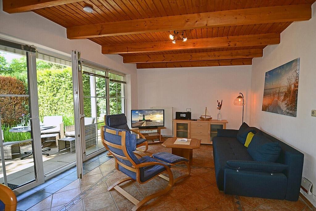Gemütliches Ferienhaus mit Sauna, WLAN und Garten in Breege an der Ostsee, ideal für erholsame Tage.