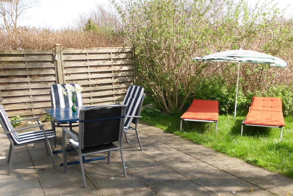Ruhige Erdgeschoss-Ferienwohnung in Breege mit zwei Schlafzimmern, moderner Ausstattung und Terrasse mit Gartenmöbeln.