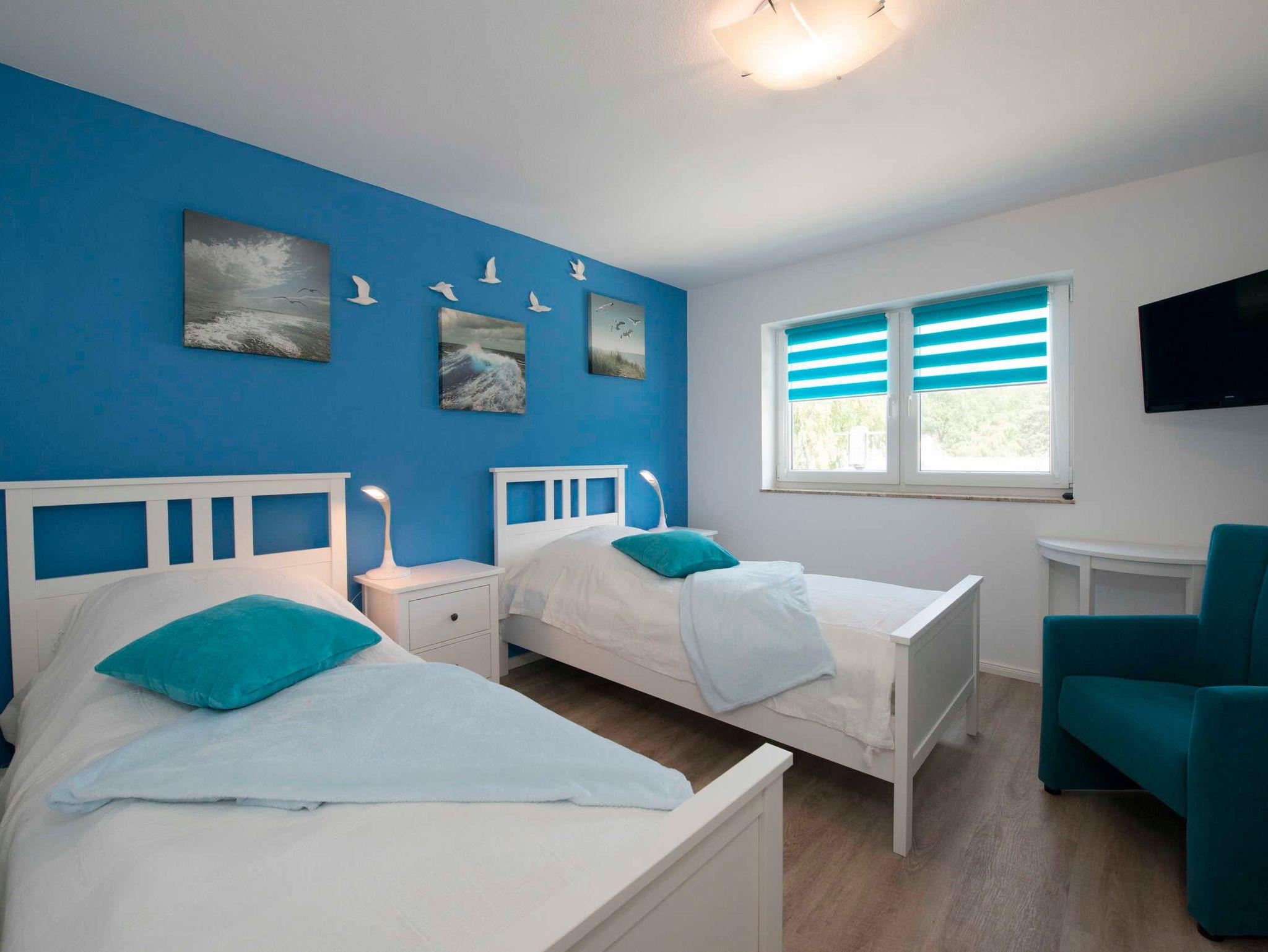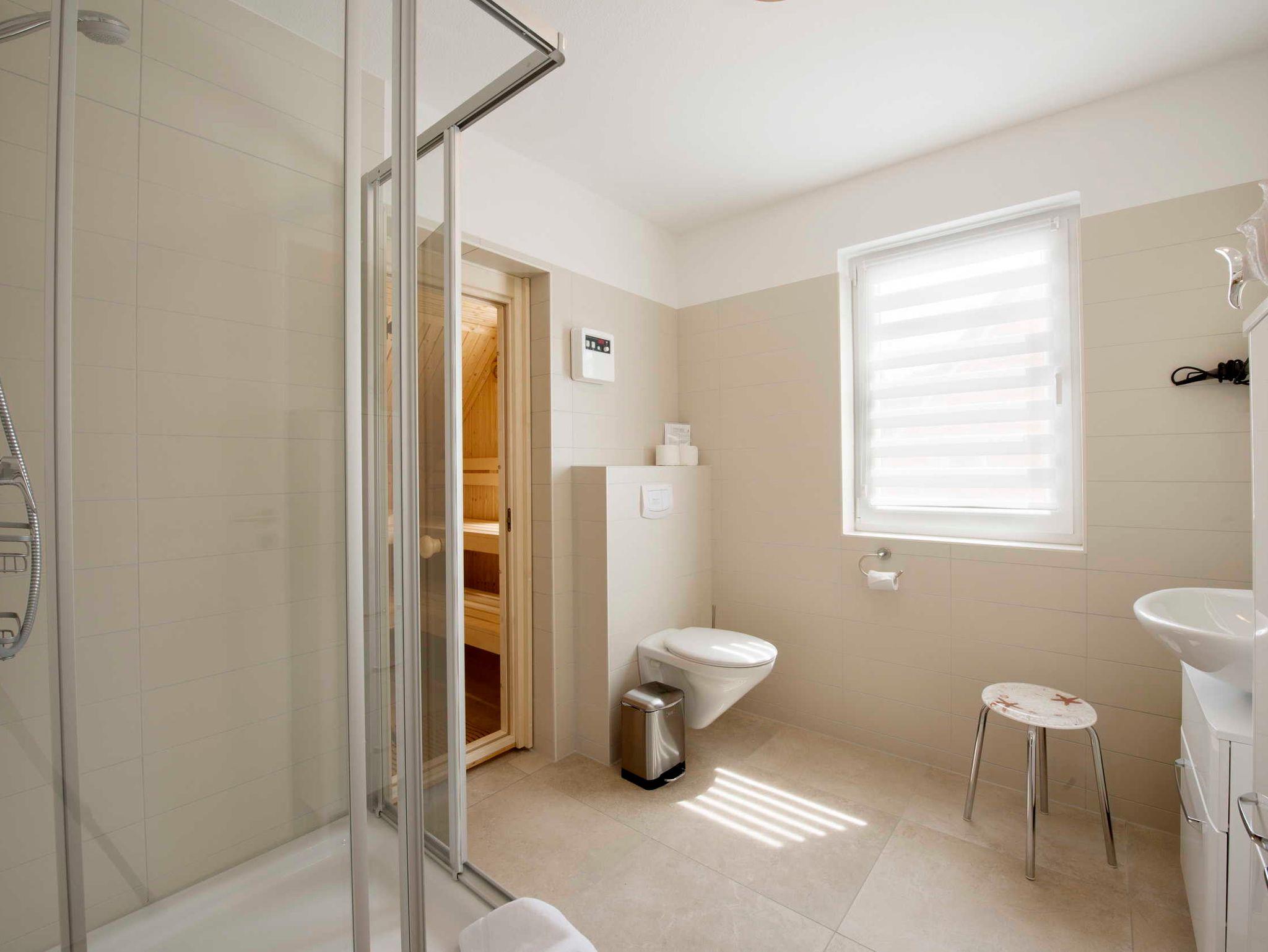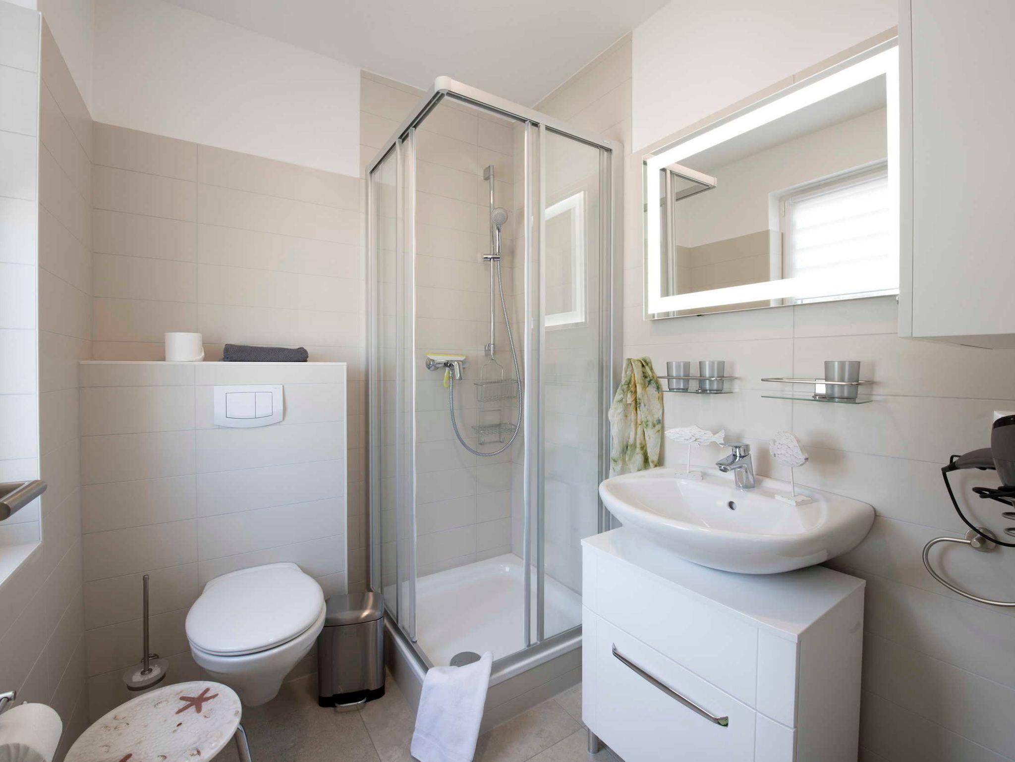 Drei Schlafzimmer bieten Schlafplätze für bis zu 6 Personen (+ 1 Baby im Babybett). Das Haus verfügt über zwei Bäder. Beide sind mit einer Dusche ausgestattet.
