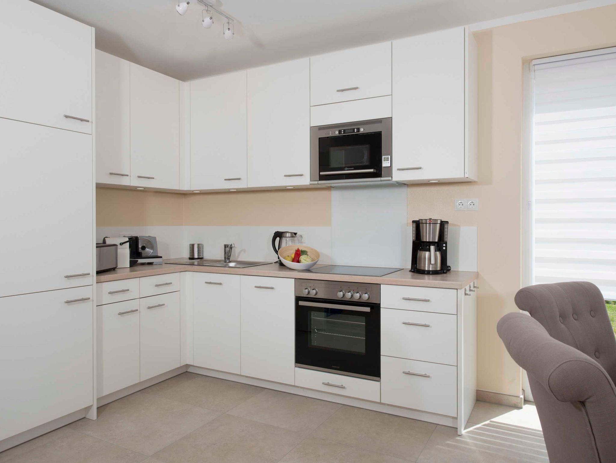 Küche mit Mikrowelle, Toaster, Geschirrspülmaschine