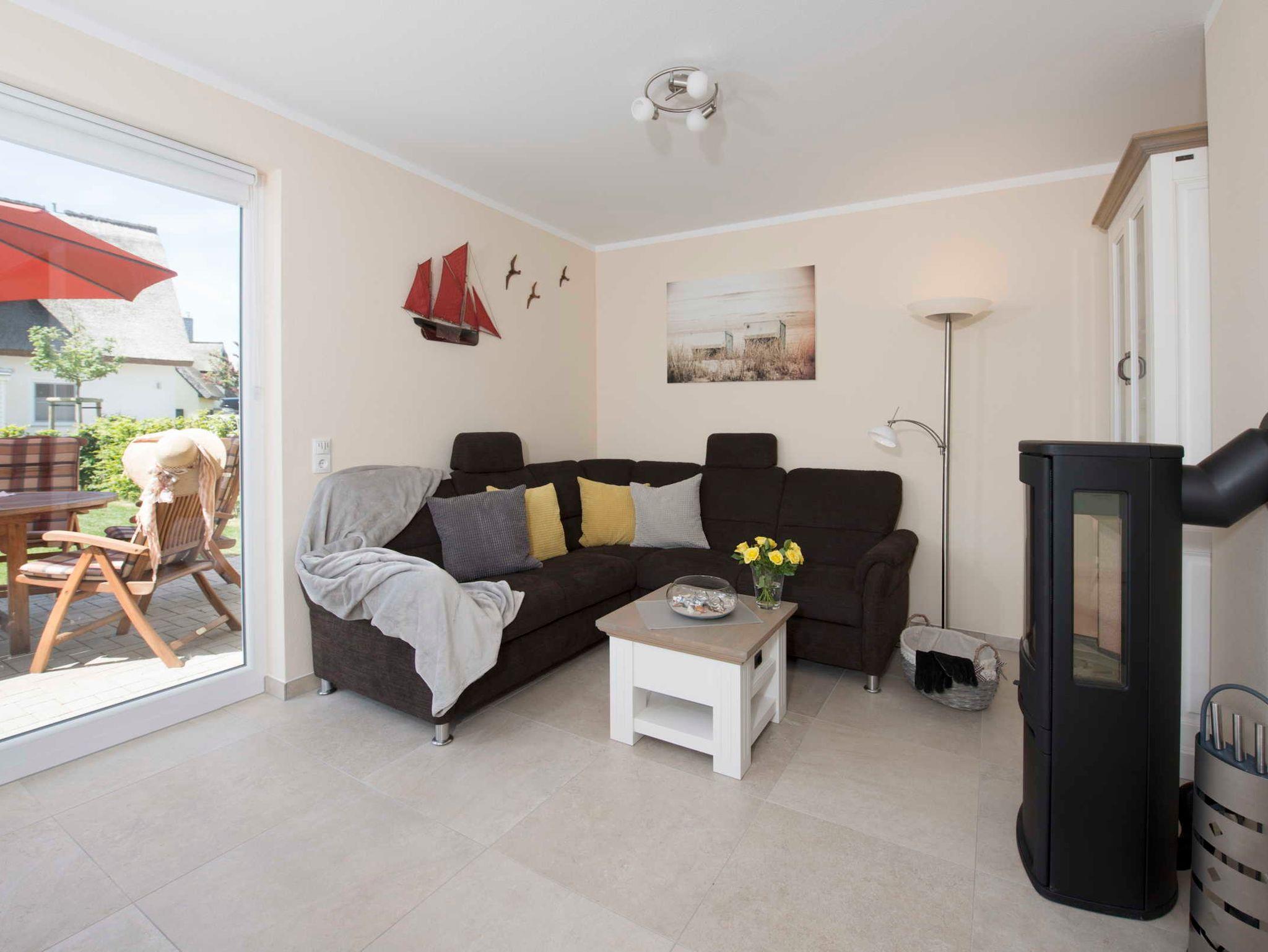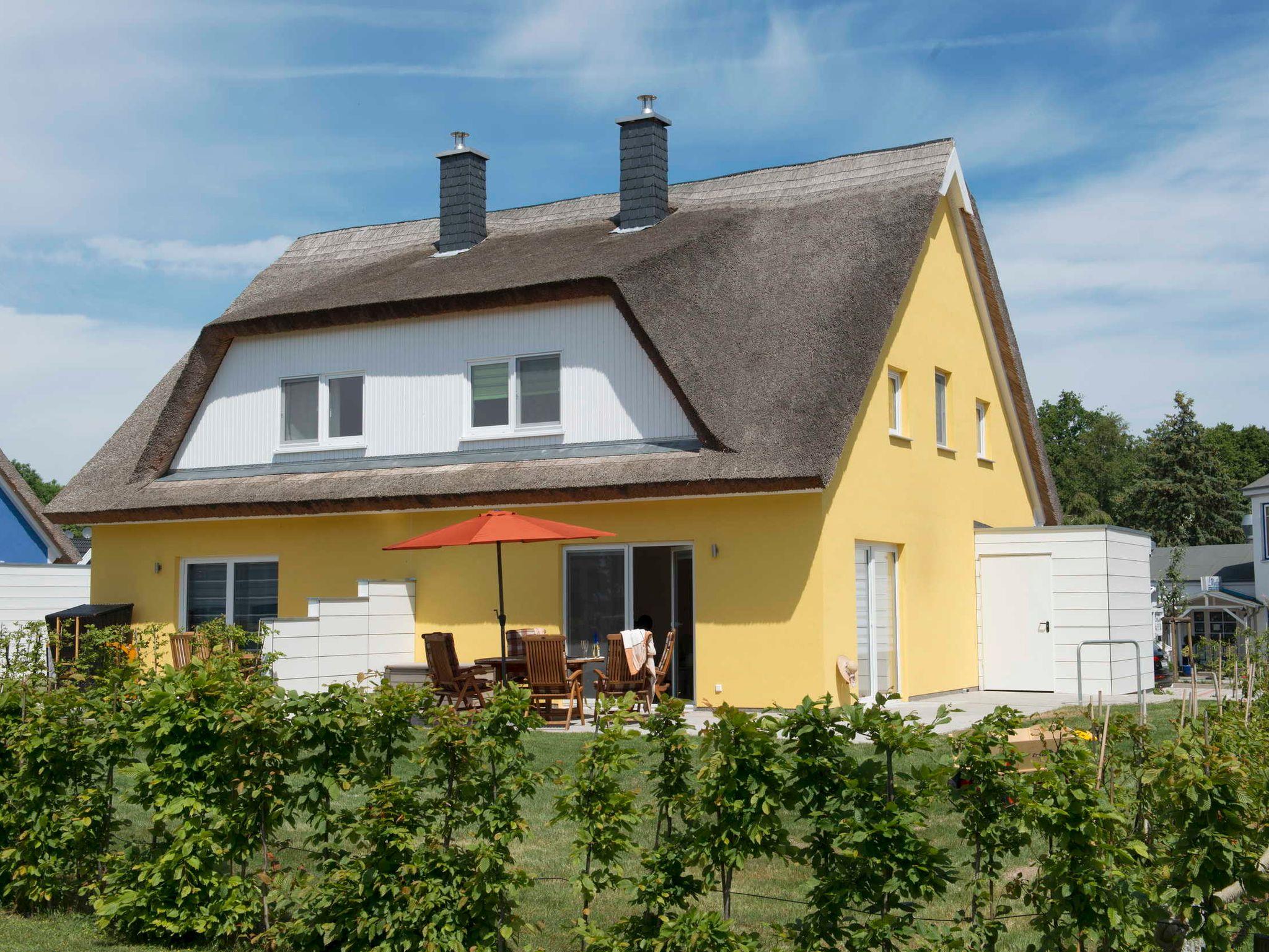 Komfortables Reetdachhaus Küstensegler nahe dem Schaabe-Strand auf Rügen mit Sauna, Kamin und großem Garten.