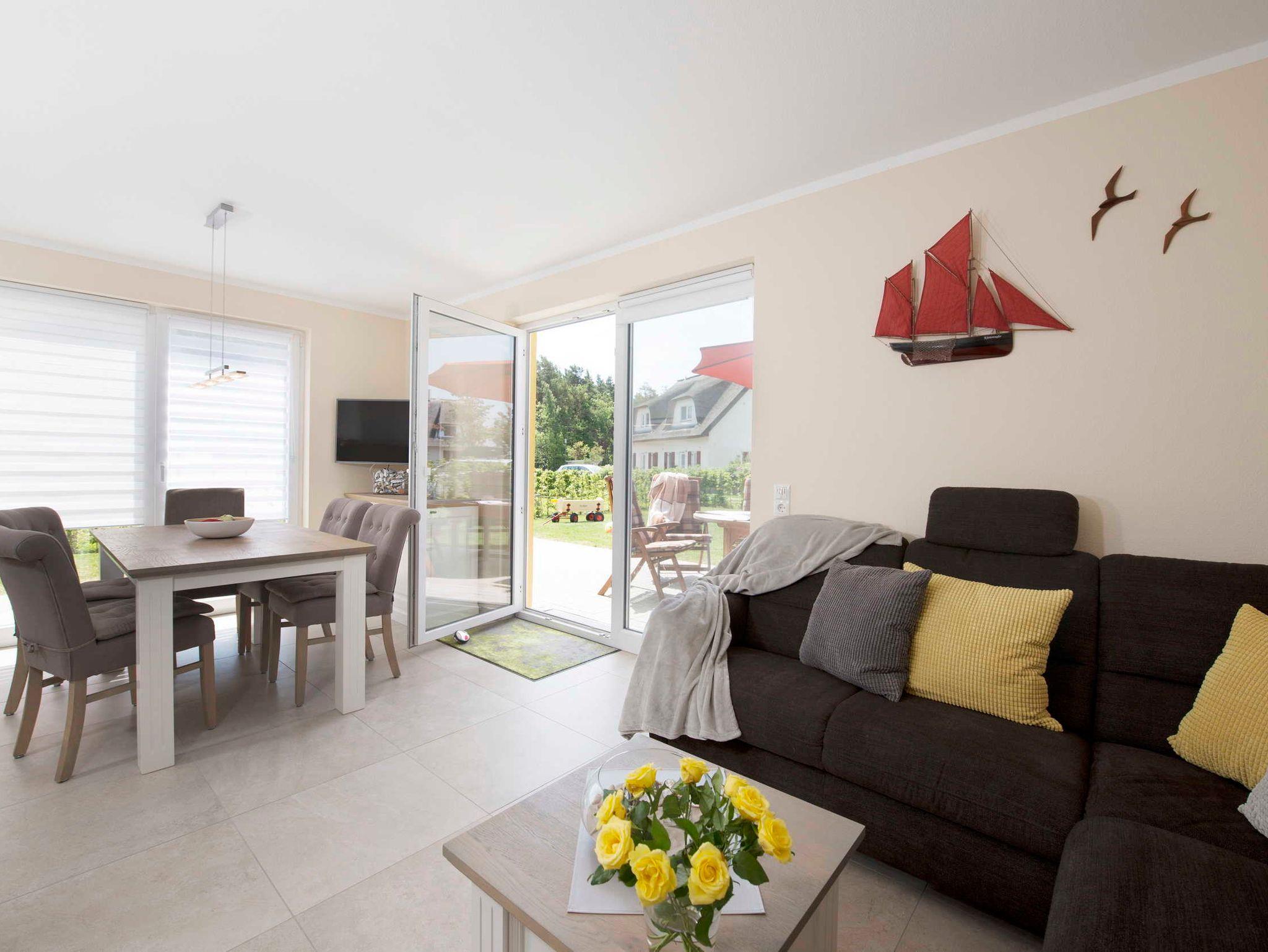 Das Domizil liegt zwischen Bodden und Ostsee und ist mit einem Kamin im Wohnbereich, einer Sauna und einer großen Terrasse mit Garten sehr komfortabel ausgestattet.