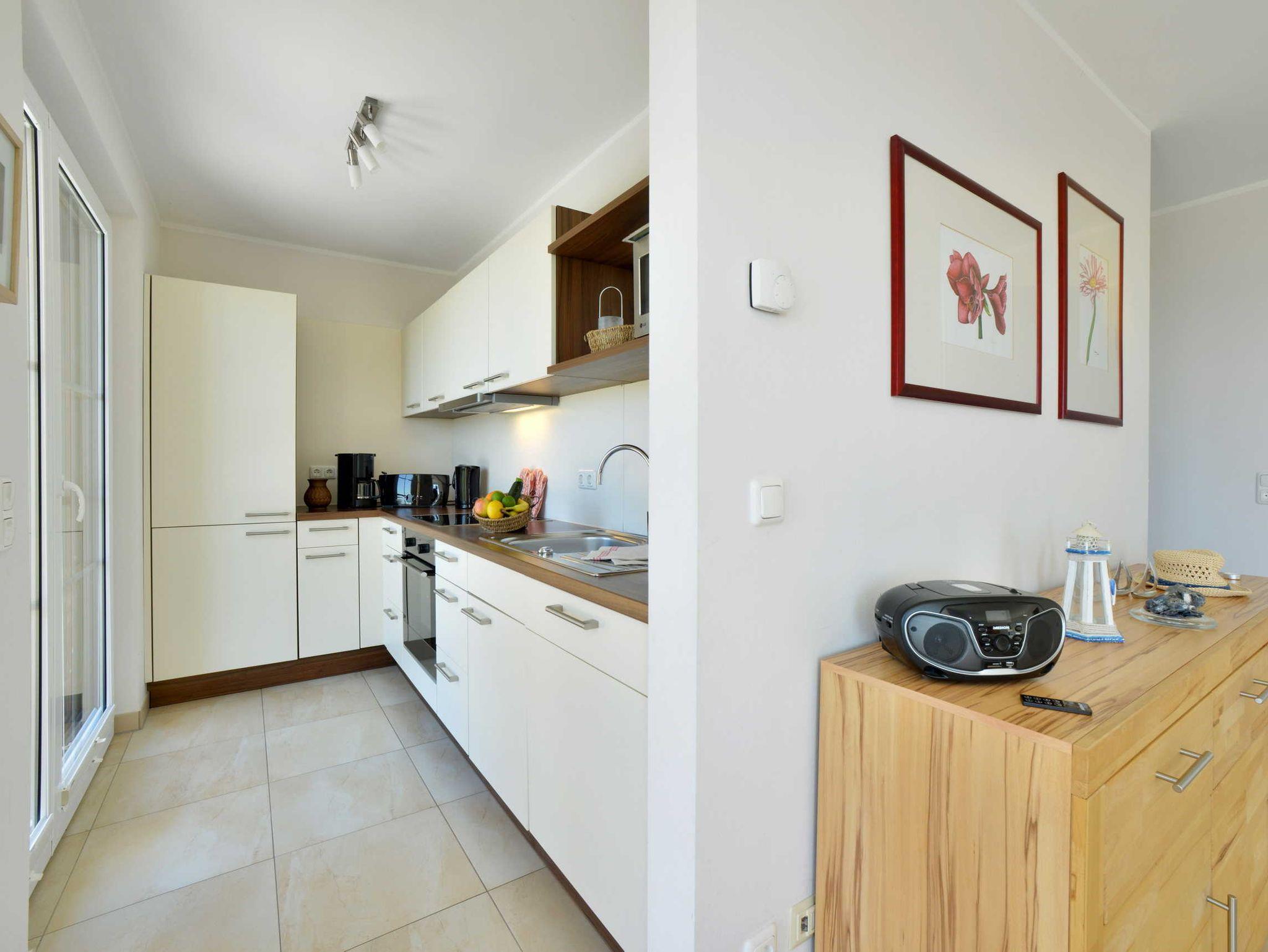 Küche mit Backofen, Mikrowelle Kühlschrank mit Gefriermöglichkeit und Spülmaschine
