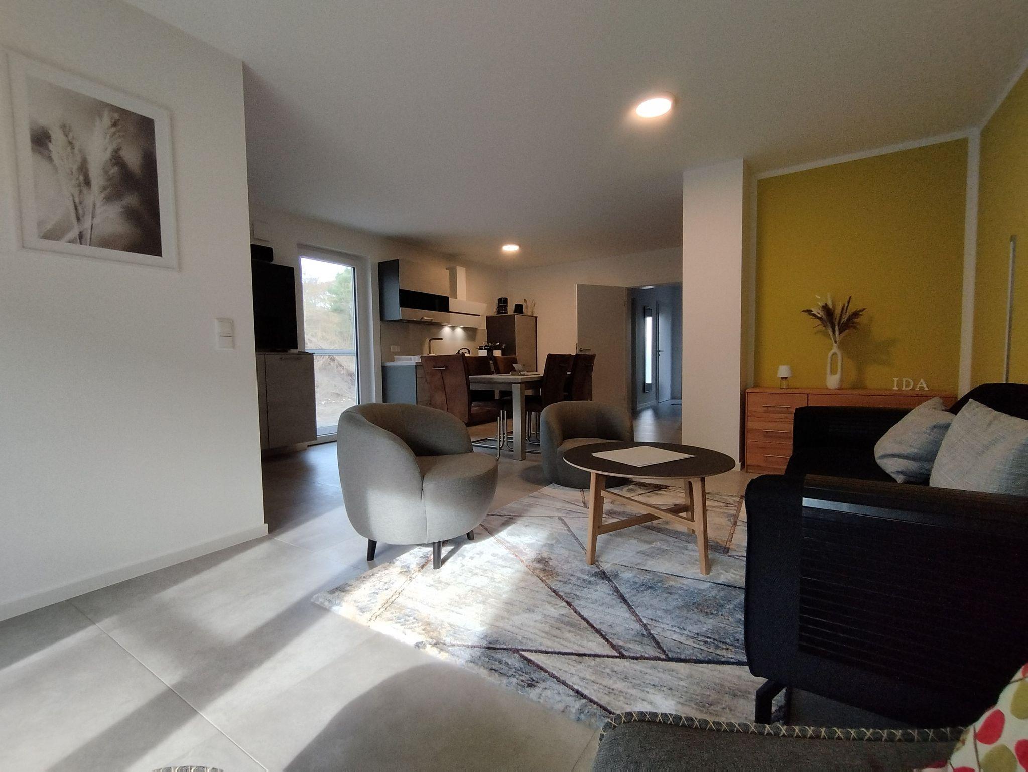 Unser Ferienhaus Ida ist nigelnagelneu und mit allem ausgestattet, was das Herz begehrt. In drei Schlafzimmern mit je einem Doppelbett und TV Gerät finden bis zu 6 Personen ein Plätzchen. Der Wohnbereich mit angeschlossener Terrasse und integrierter Küche ist von gemütlichen Sitzmöbeln umgeben. Der große Esstisch lädt zu Geselligkeit mit der Familie und Freunden ein. Die Außensauna eignet sich besonders an kalten Tagen zum Relaxen und Durchwärmen. Ebenso steht eine Wallbox Ladestation zur Verfügung.