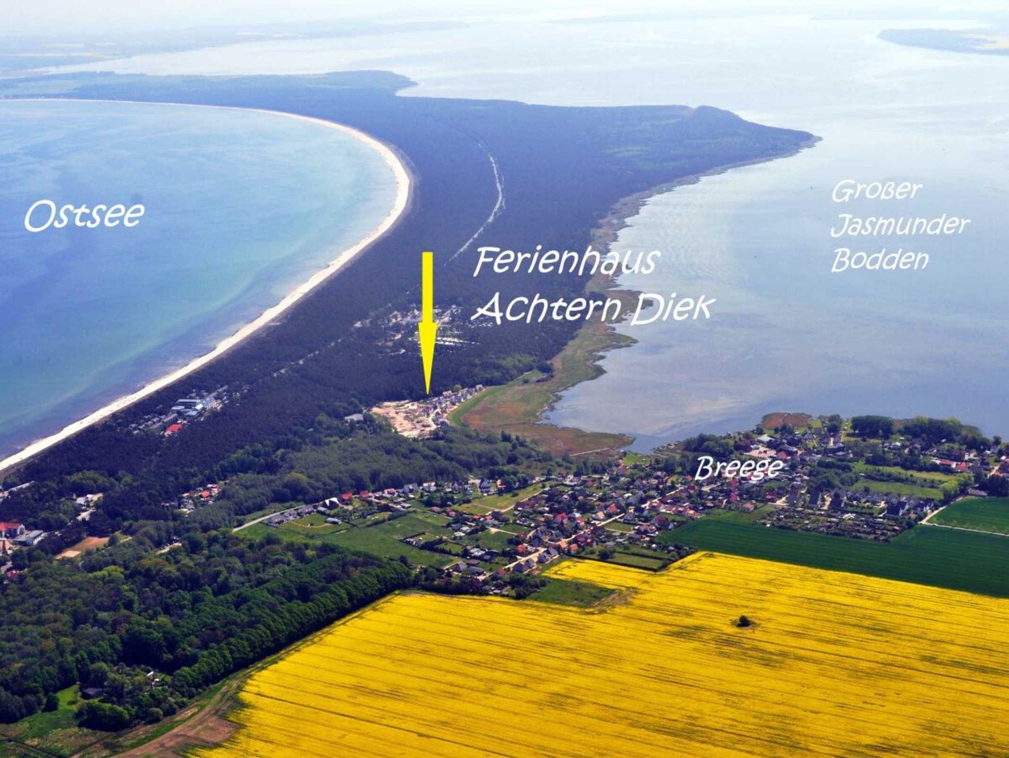 Die reetgedeckte Doppelhaushälfte Wellenläufer liegt in ruhiger Lage zwischen Breeger Bodden (80m) und der Ostsee (400m).