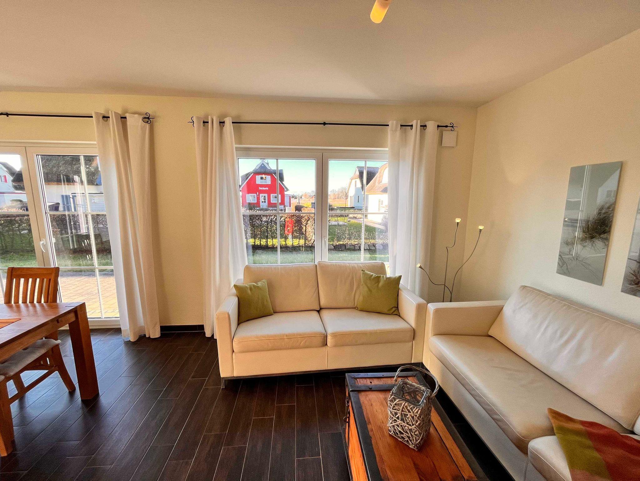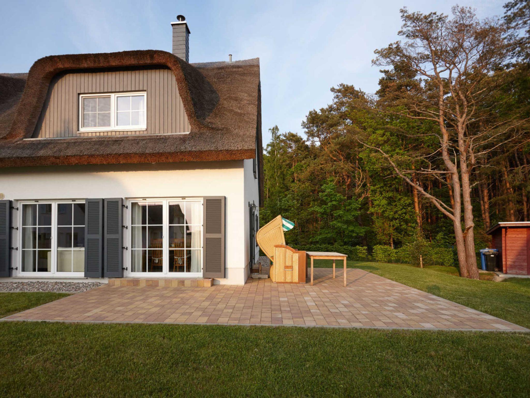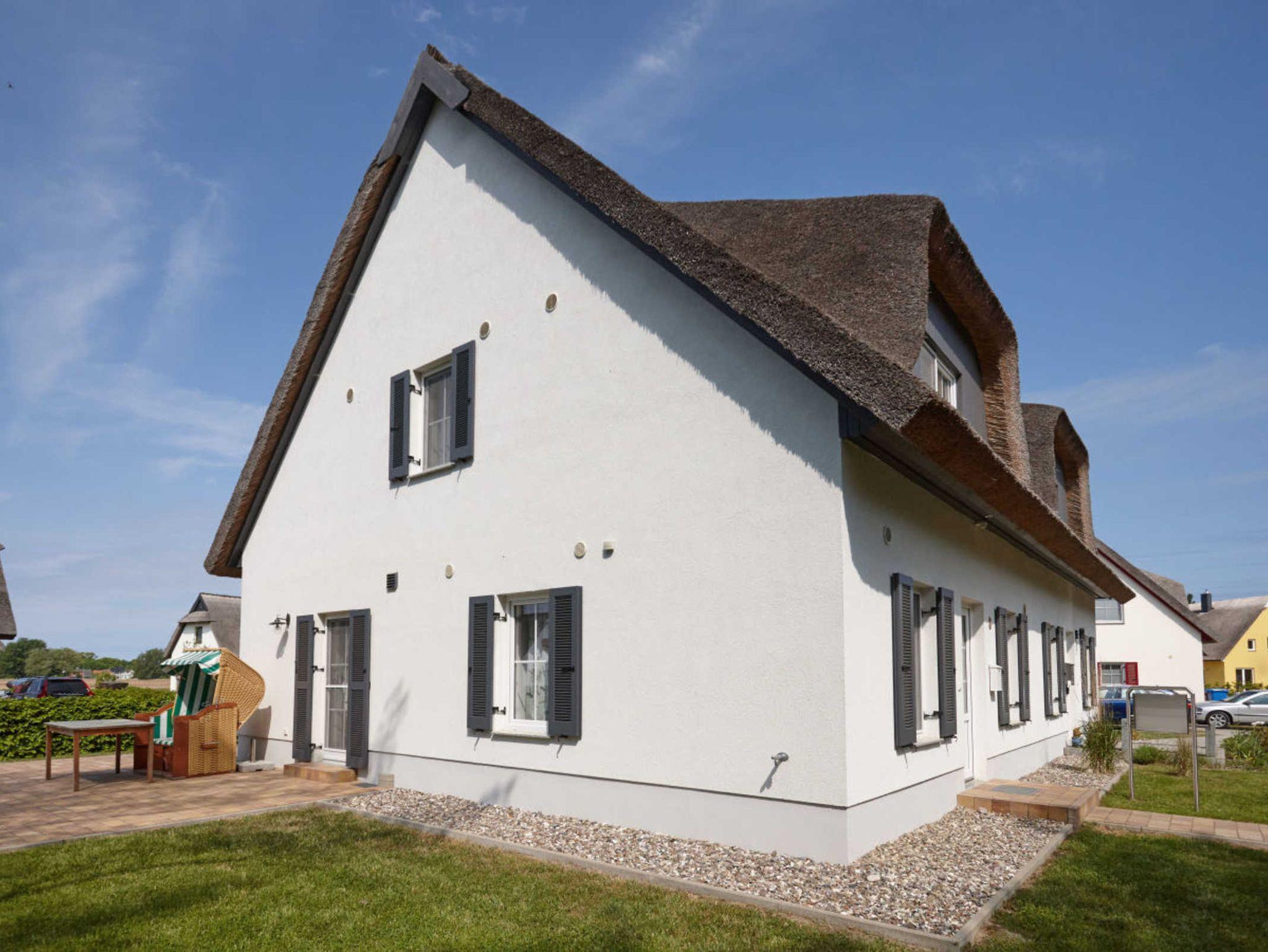 Das reetgedeckte Doppelhaus Wellenläufer bietet ruhige Lage nahe Ostsee und Breeger Bodden mit moderner Ausstattung.