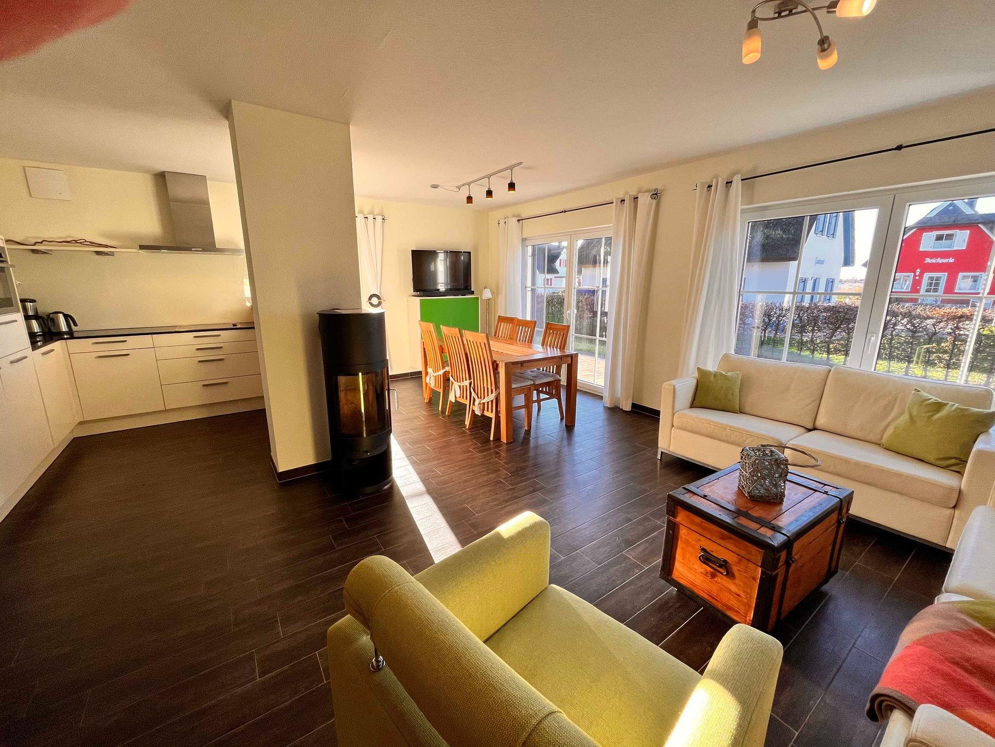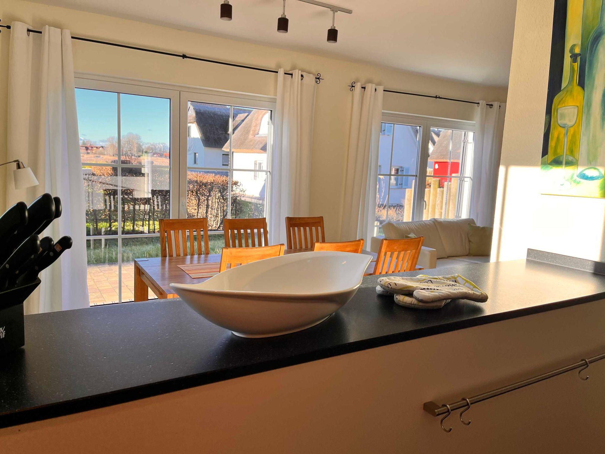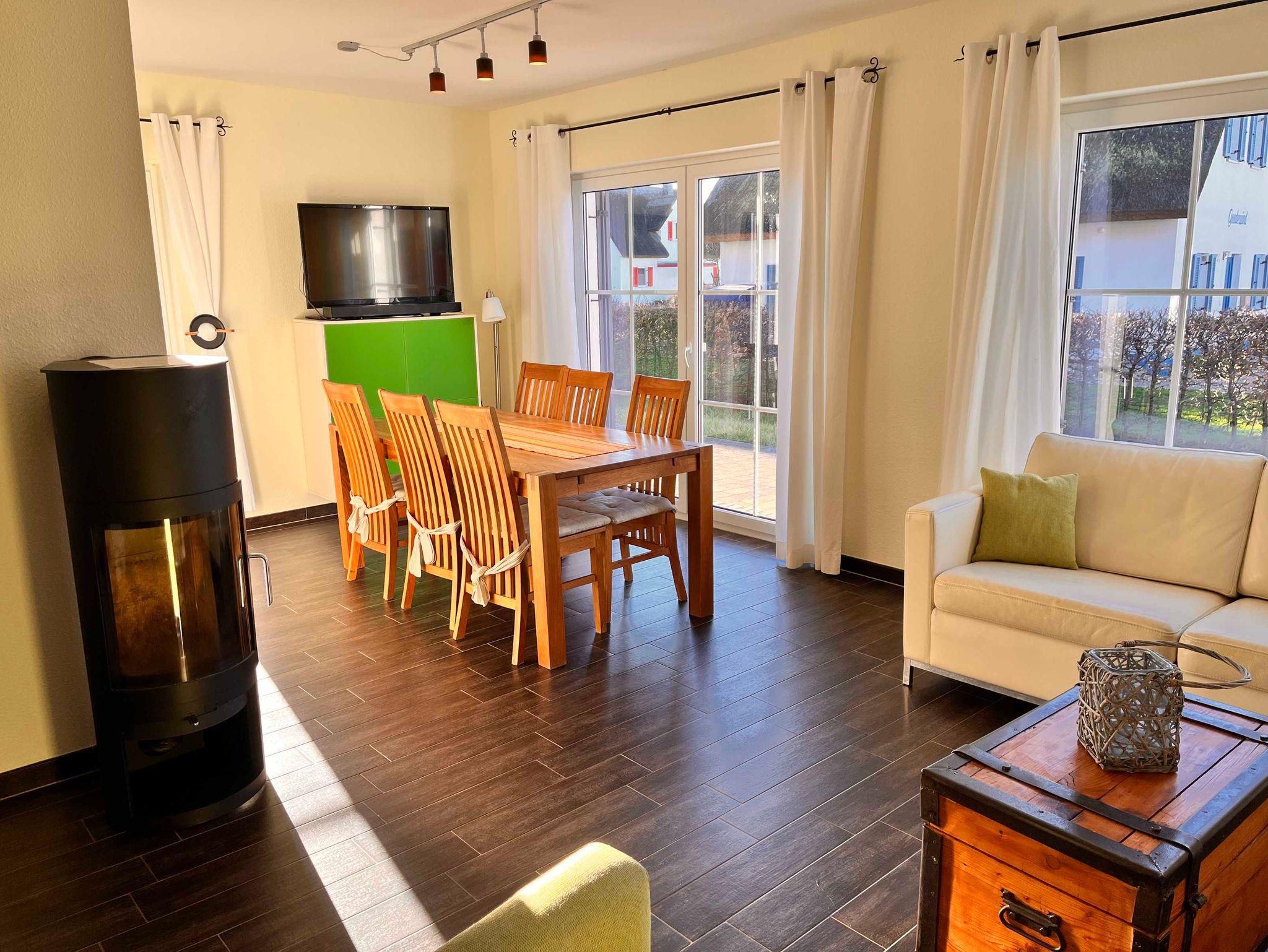Das reetgedeckte Doppelhaus Wellenläufer bietet ruhige Lage nahe Ostsee und Breeger Bodden mit moderner Ausstattung.