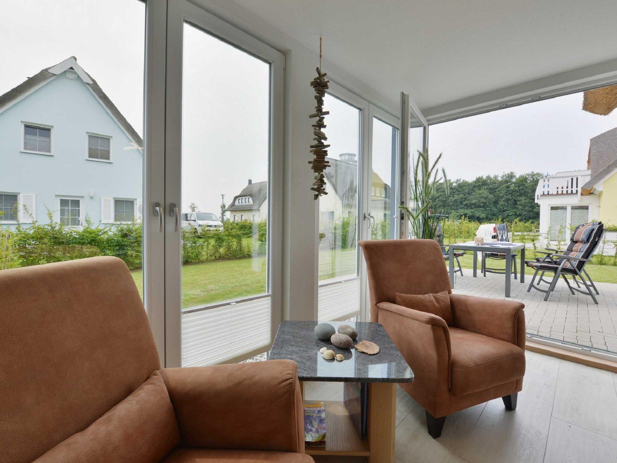 Das Ferienhaus Ausguck bietet einen idyllischen Blick auf den Breeger Bodden mit Sauna, Kamin und großzügiger Terrasse.