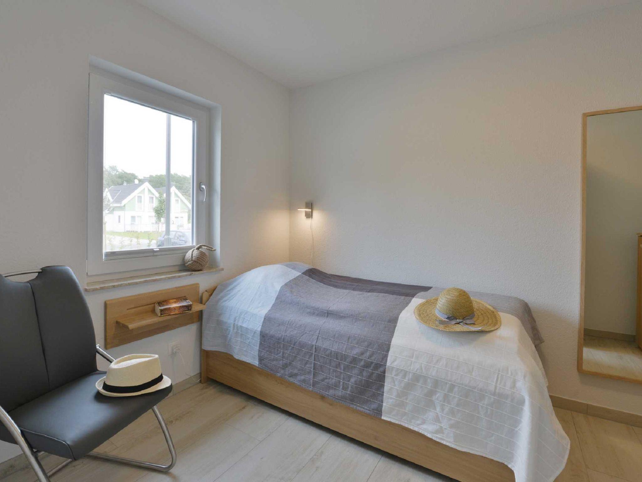 Das Haus verfügt über 3 Schlafzimmer, an eines grenzt der Balkon, welcher einen weiten Blick über den Breeger Bodden bietet.